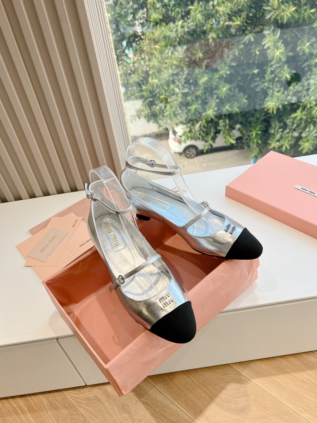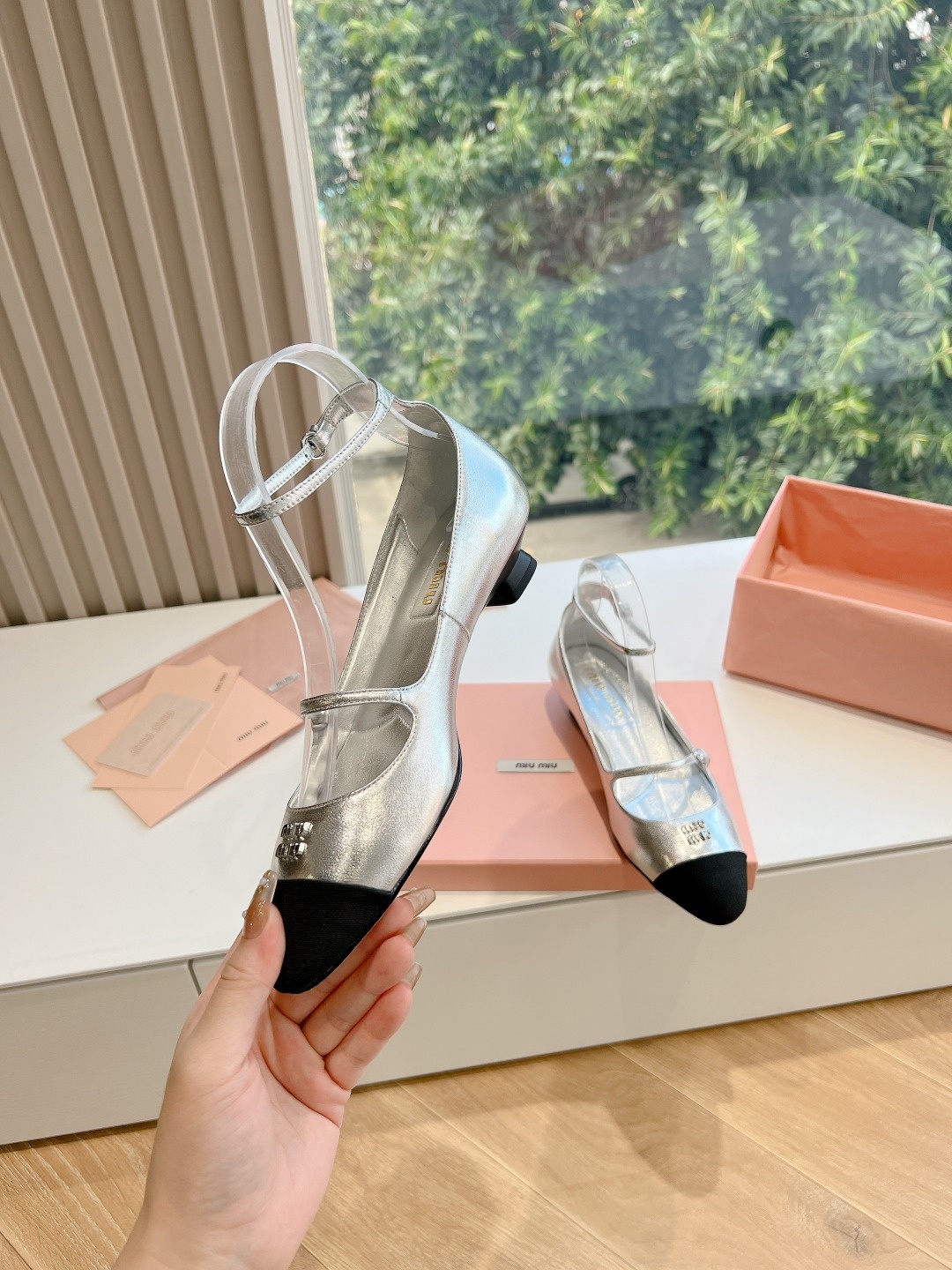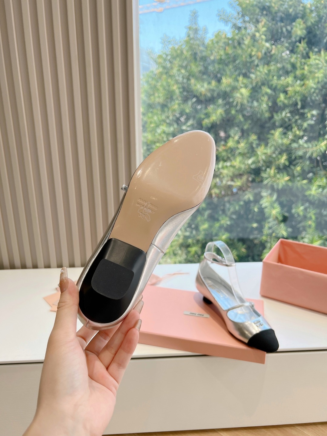 오리지널 1대1 프리미엄 미우미우 24 봄여름 단화 숄더 샌들 뾰족한 리본을 펀칭하여 섹시함과 조화를 이루는 메리제인 겉감: 메탈 양가죽 안감: 양가죽 굽높이: 약 2CM