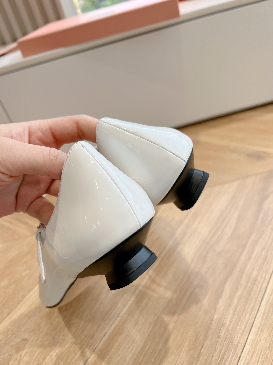 오리지널 1대1 프리미엄 미우미우 24 봄여름 단화 뾰족한 리본을 펀칭하여 섹시함과 조화를 이루는 메리제인 겉감: 에나멜 안감: 양가죽 굽높이: 약 2CM