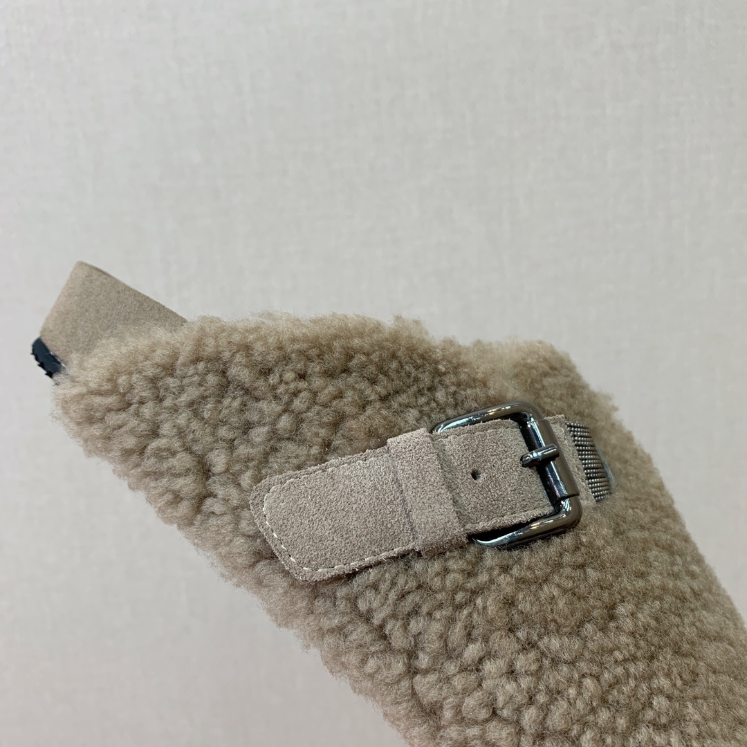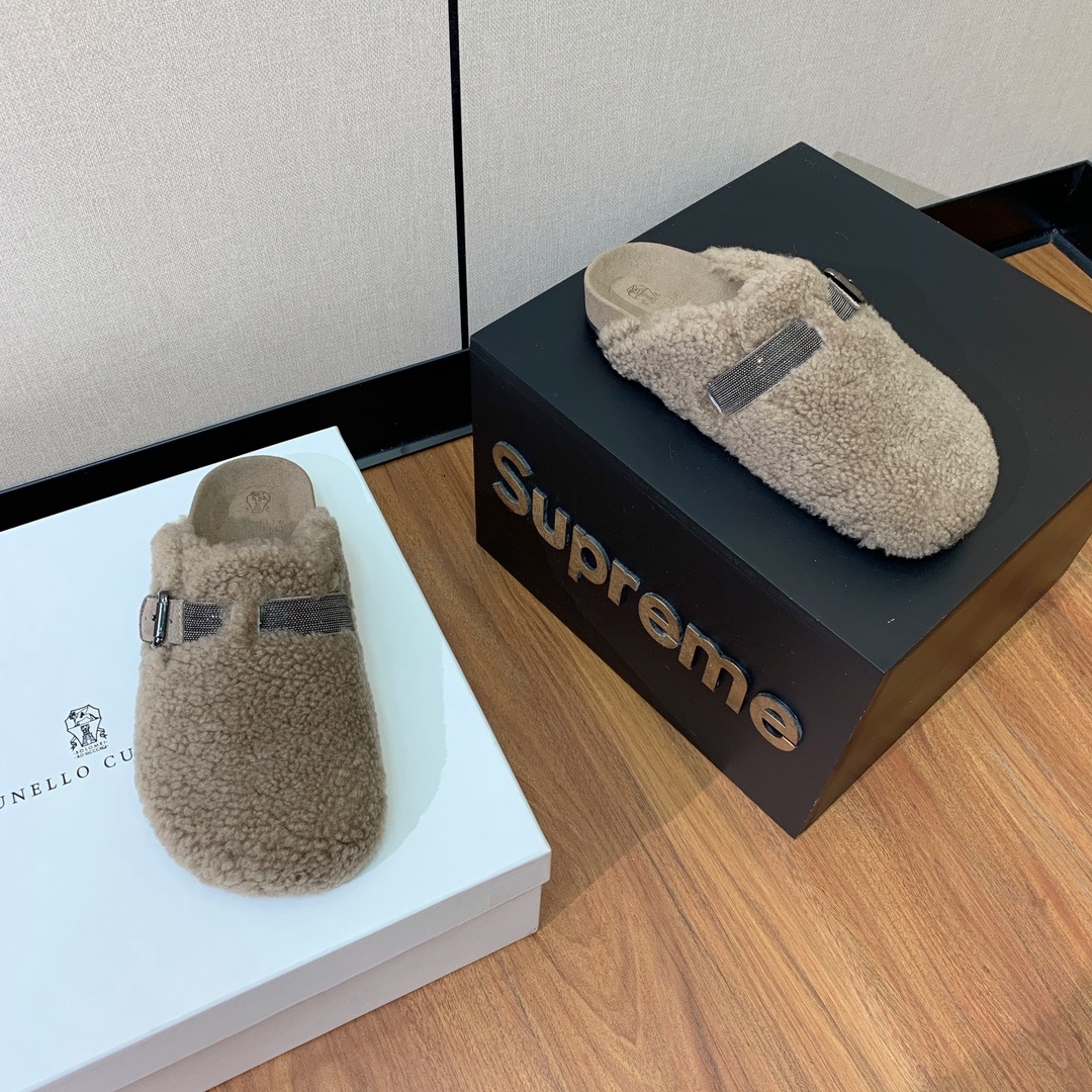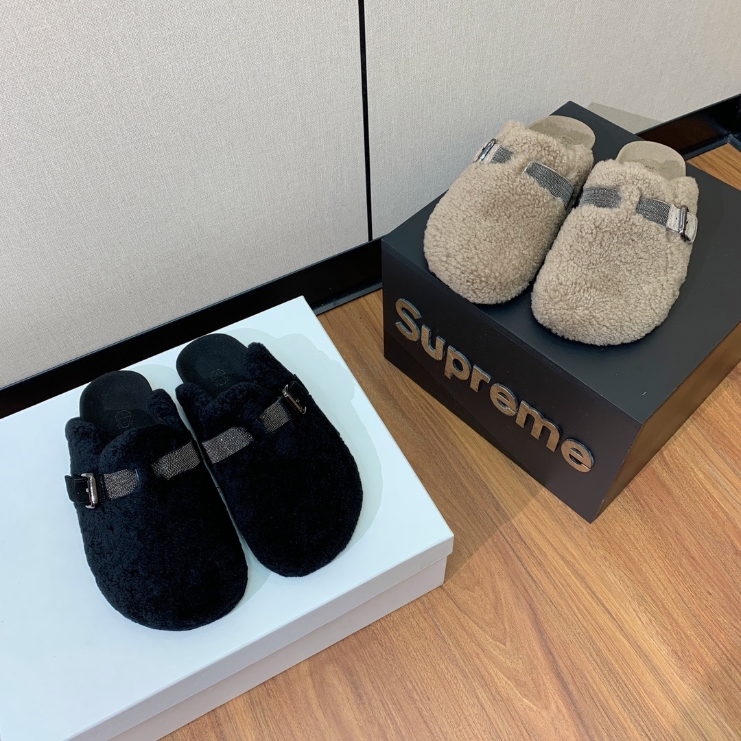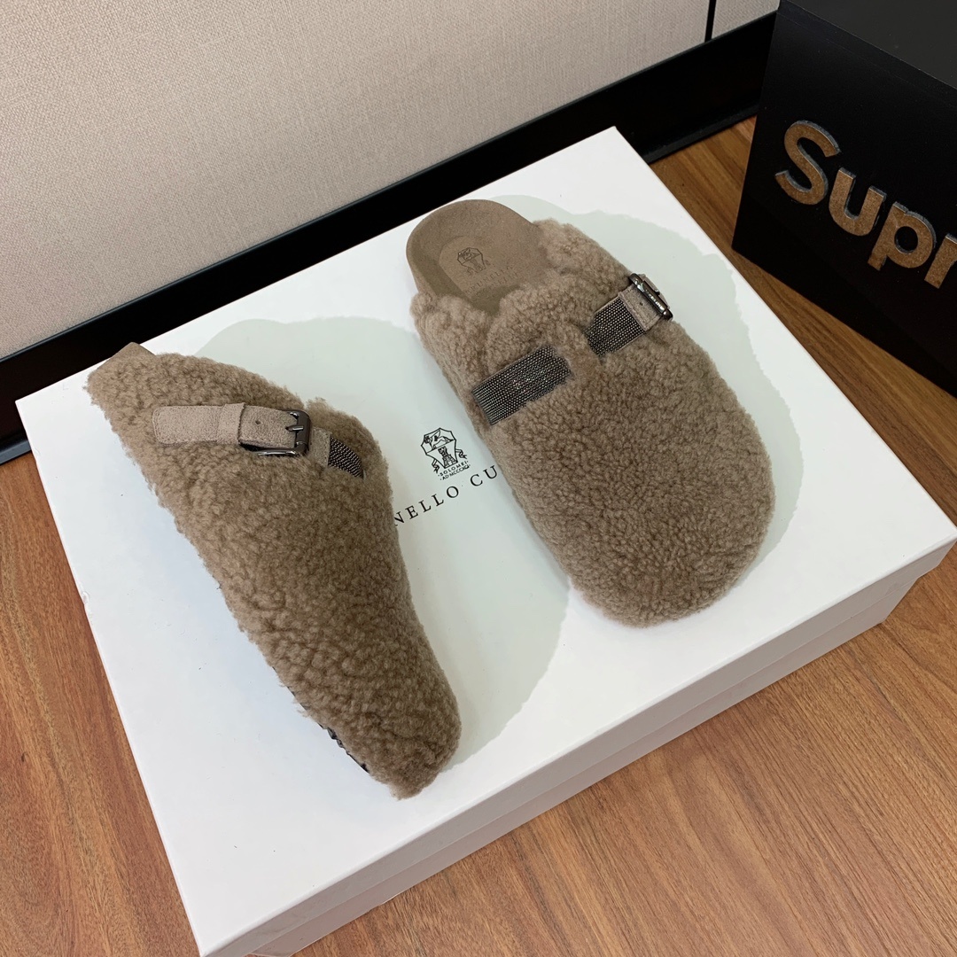 브루넬로쿠치넬리 양털 뮬 슬리퍼 양털 신발 표면+순수 핸드메이드 탠덤 비즈 체인 액세서리 고무 밑창