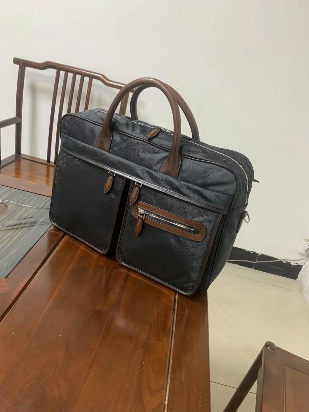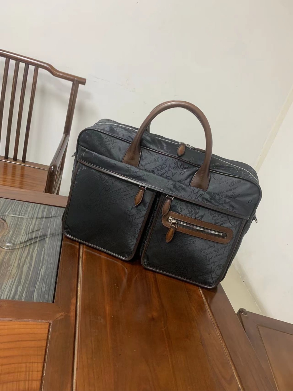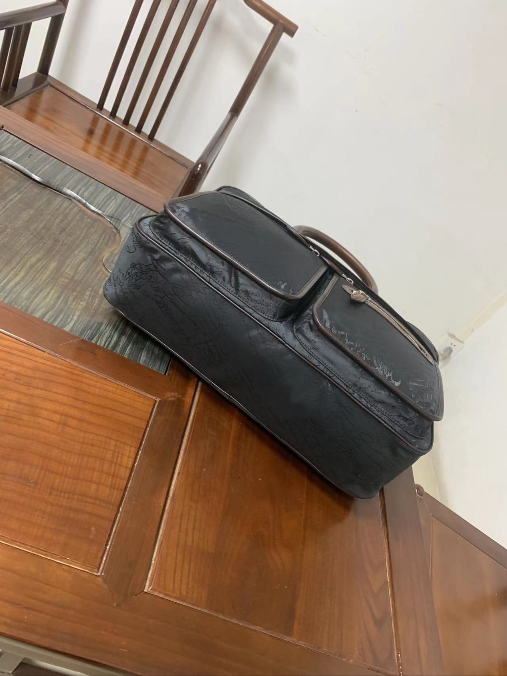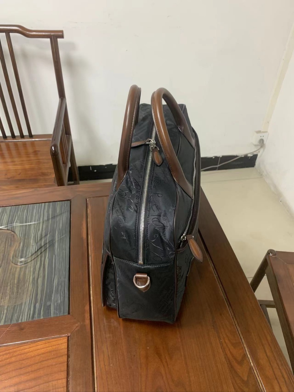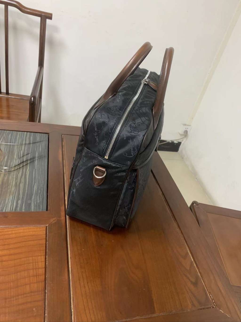 BERLUTI Weekend 자가드 스크리토 모피 여행가방 외부 특징 : 지퍼 앞주머니 3개, 가죽받침 4개, 탑핸들 2개 내부 특징 : 큰 지퍼 포켓, 평평한 포켓 하나 어깨 : 조절 가능 탈부착 가죽 어깨끈 사이즈 : 높이 30 - 폭 45