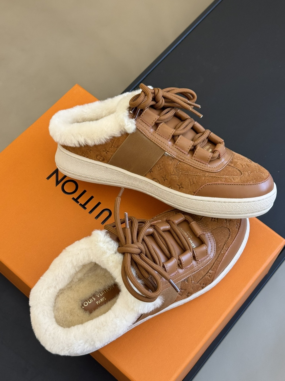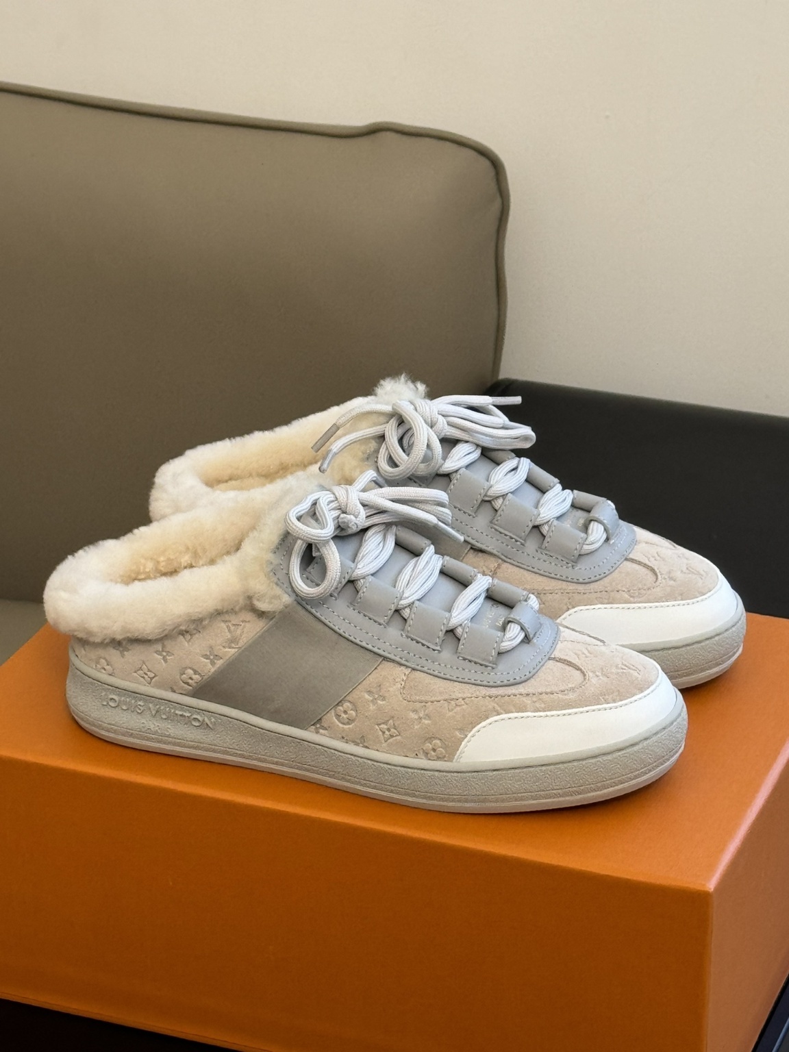최고 품질 LV fw23 new arrival 2023 가을겨울 울 스포츠 세미 트레일러 신상 스웨이드 엠보 미니 엠보 로고 송아지 가죽 패치 디테일이 풍부하고 세련되고 고급스러움 모피 일체형 양털로 폭신폭신 오리지널 몰드 고무창