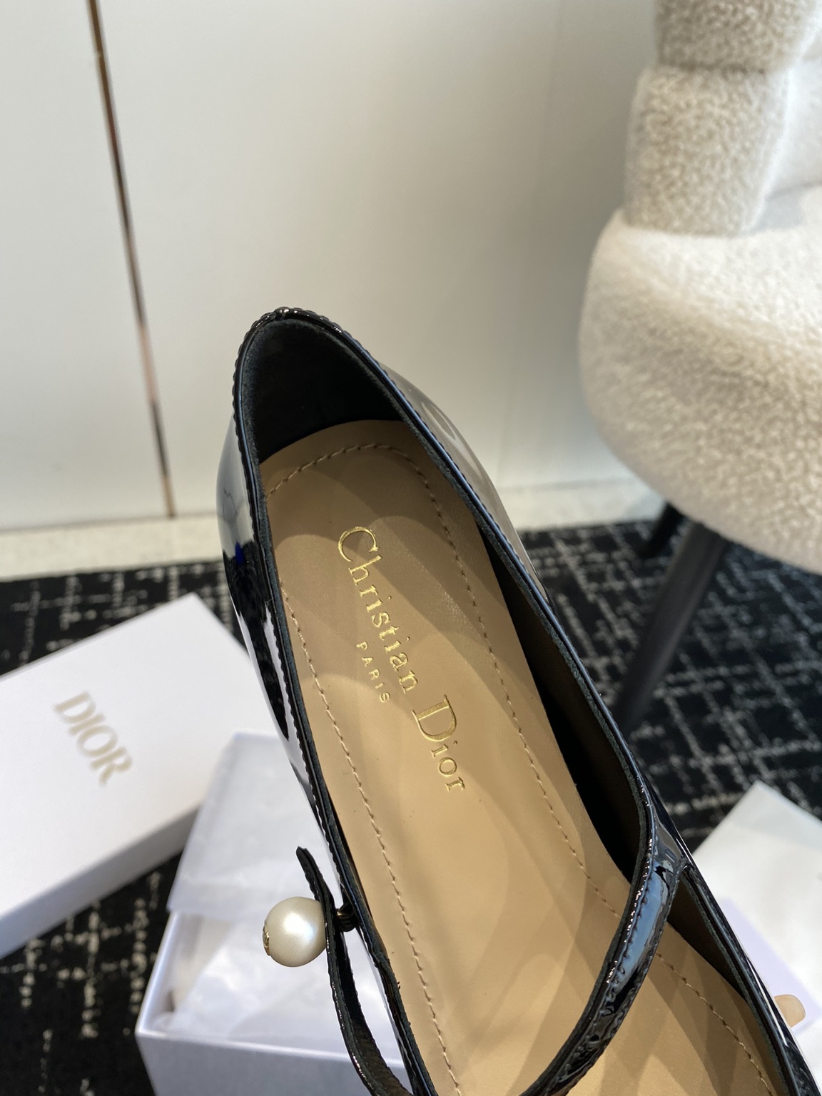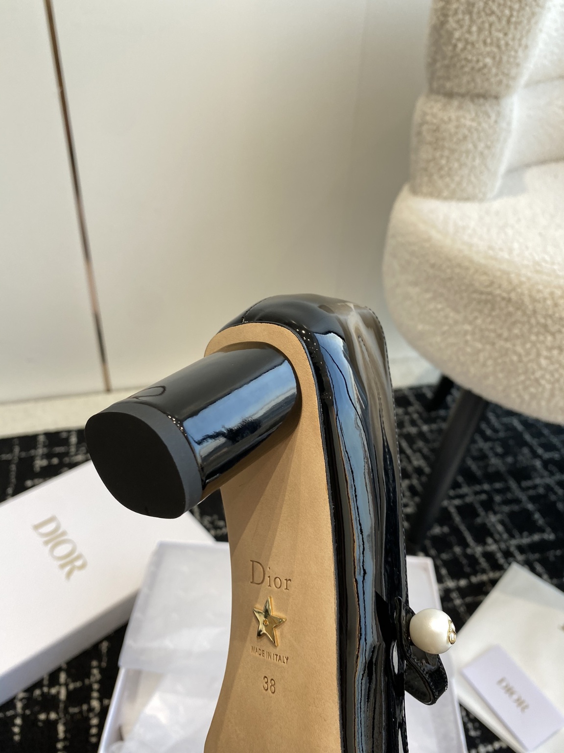 디올 23ss 가을겨울 라운드힐 메리제인 스퀘어 슈즈 클래식한 메리제인 슈즈를 재해석하여 고급스럽고 모던한 스타일을 선보임 모노톤 소 페이턴트 가죽 표면에 장식적인 아일렛 디테일과 진주 CD버튼을 매치하여 멋스럽게 연출 우아한 스퀘어 앞코와 5cm 원기둥 모양의 굽 더욱 세련되어 보이는 라인의 스트랩과 매치