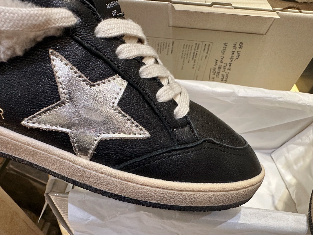GGDB BALLSTAR 친환경 양가죽+옆모습이 돋보이는 라이트골드 별패치 램스울 안감으로 발이 부드럽고 편안하며 3cm 키높이로 가볍게 히든 키가 커보임