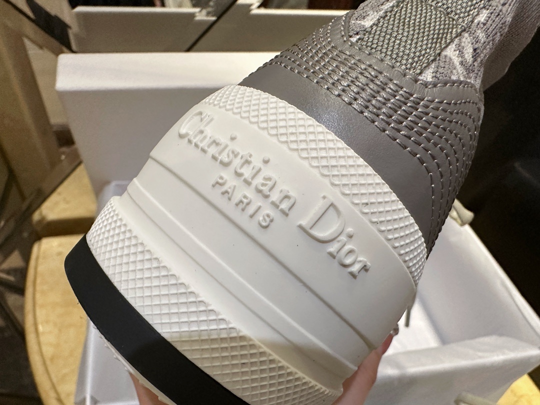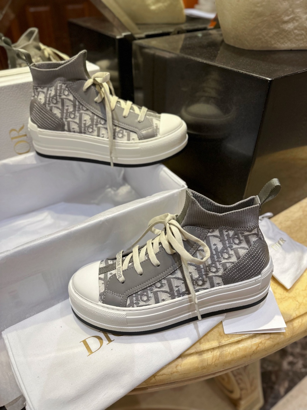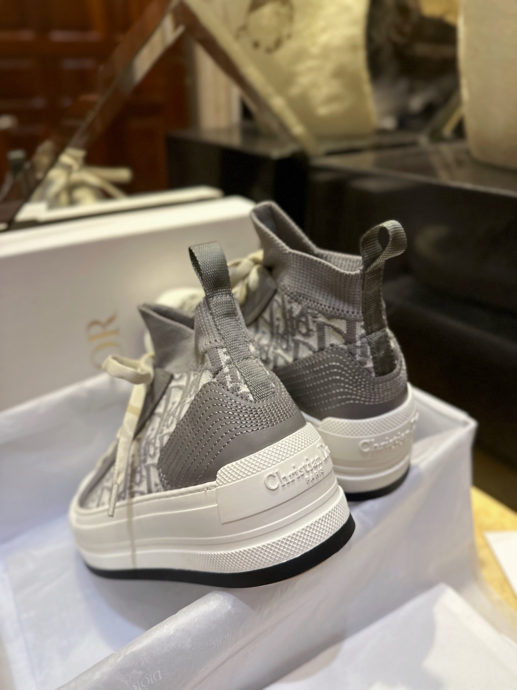 디올 워크앤 하이탑 스니커즈 입체 스판 양면 자수 공법으로 신발의 면부분이 촘촘하게 짜여진 쭈글쭈글한 레터링 세련되고 우아한 자수 패턴 부드럽고 신축성 있는 원단으로 신고 벗기 편리함 4.5cm 도톰한 바닥으로 다리가 길고 얇아보임 캐주얼 패셔니스타의 선택