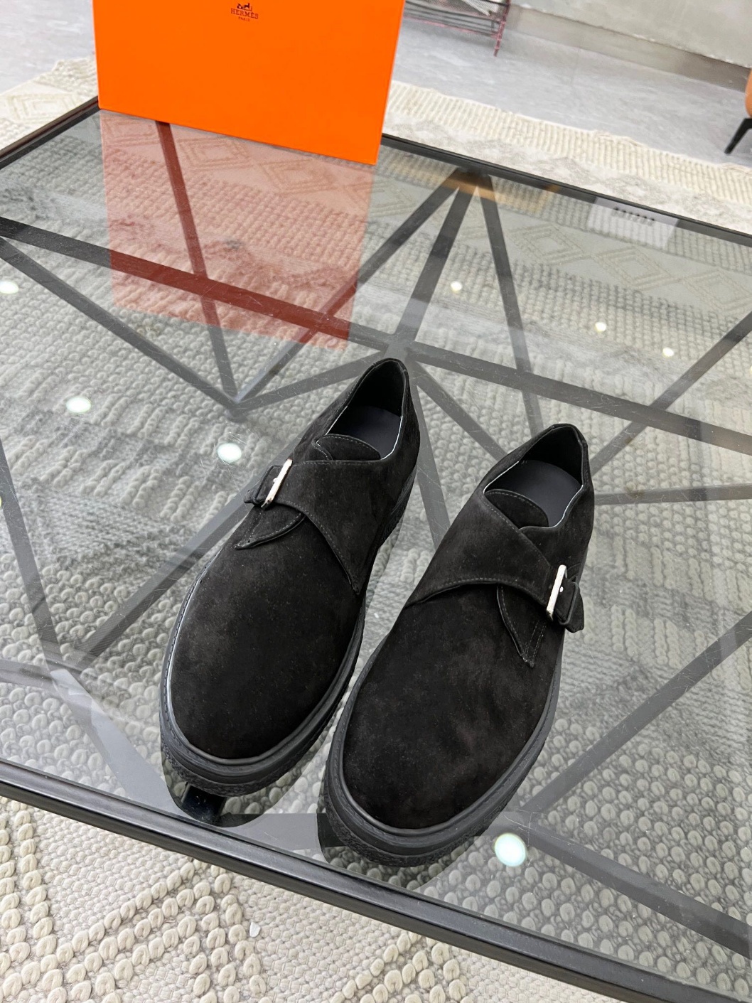 에르메스 신상 캐주얼 구두 초고급 오리지널 품질, 럭셔리 선재 신발 겉면 수입원판 소가죽으로 제작+소가죽 내피 순수 수제작업으로 편안한 착용감만을 위한 원판 고무마모 통굽