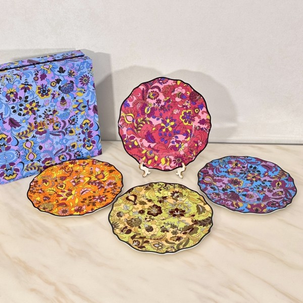 Dior 접시 4 세트 Jardin Indien의 플라워 디자인과 리메이크된 클래식한 주이 프린트는 핑크, 옐로우, 블루, 오렌지 등 화려한 색상으로 인도적인 동식물을 기리고 있음 이 매혹적인 창의세계의 다채로운 매력을 더욱 돋보이게 함 접시사이즈: 26.5cm 카운터 투 에디션 포장