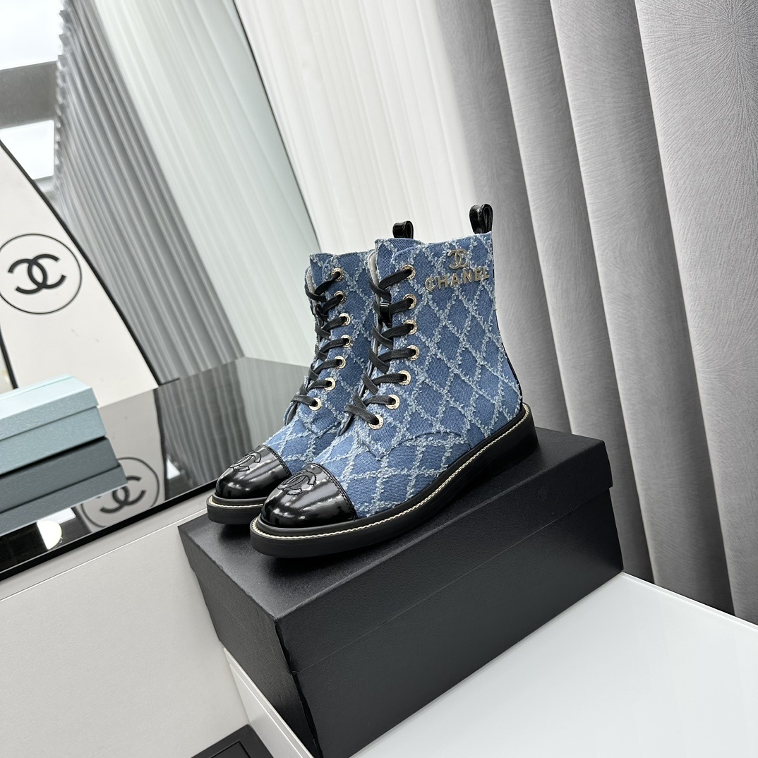 2023 샤넬 앵클부츠, 이번 시즌 가을 겨울 필수 아이템 샤넬 가을 겨울 중공업 핫픽스 앵클부츠 남다른 스타일링 연출, 자유로운 믹스매치로 반짝반짝 정교한 디테일을 확대하여 보기 원형 몰딩 메탈 버클, 최상급 구매대행 신발 겉면은 오리지널 테두리 매장 동일 데님 새틴 양가죽 안감, 양가죽 발받침, 오리지널 몰딩 고무 빅창
