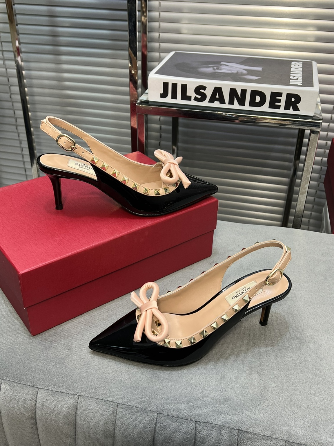 24 발렌티노 리벳 클래식 샌들 신발 에나멜 속 패드 혼종 양가죽 이태리 황소가죽 빅 베이스 무늬가 매장과 일치함