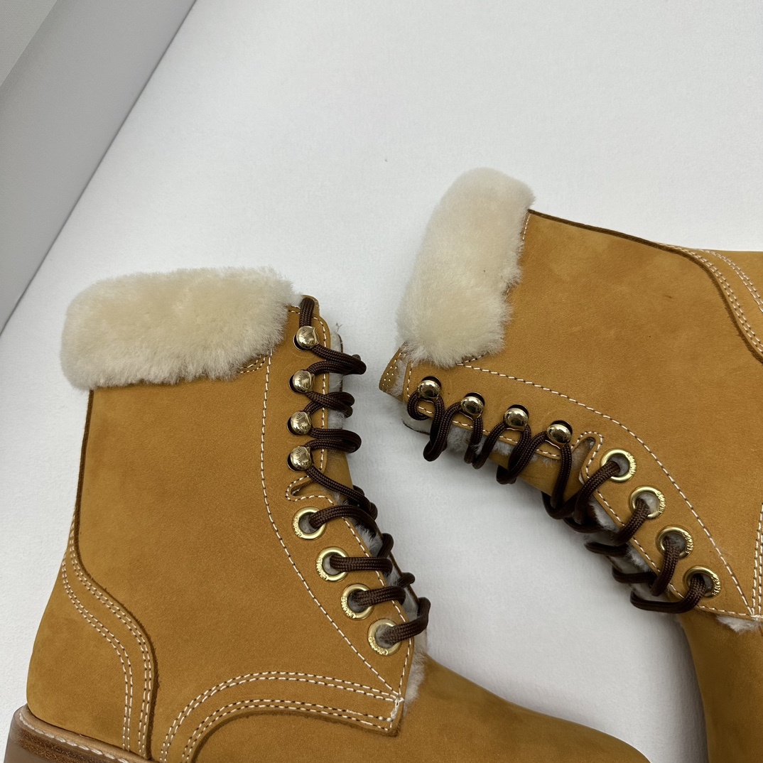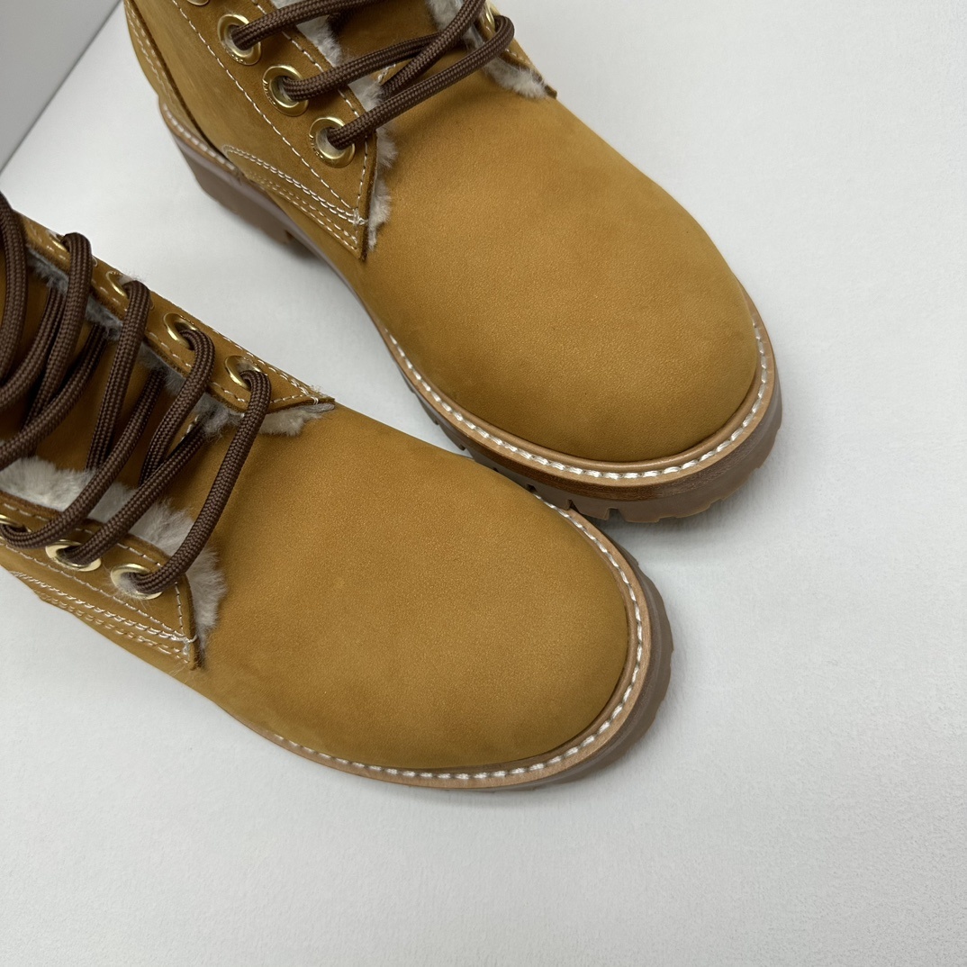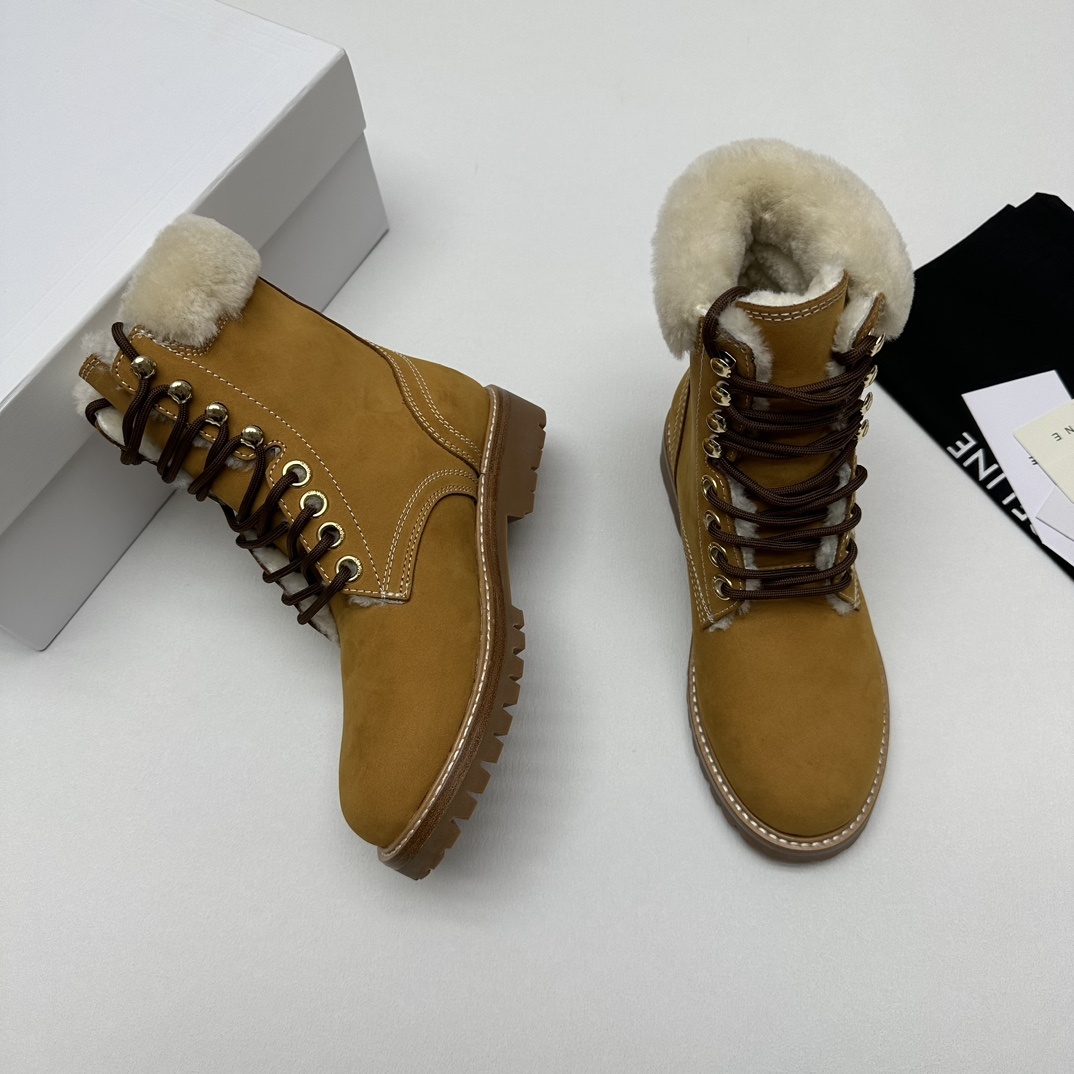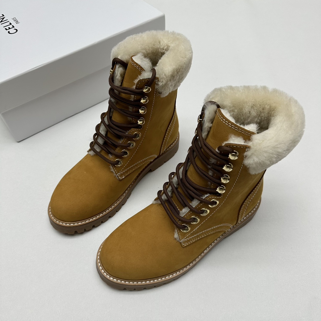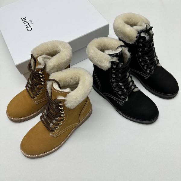 셀린느 23ss 가을 겨울 신상 털 일체형 워커 스노우 부츠 스노우 부츠 보온성 중요, 핏도 중요 양가죽 털 일체형 신발로 털 길이가 2CM 이상이며 보온성이 좋고 추위에 강함 5cm 밑창 겉감 맞춤 왁스 송아지 가죽 내피 퍼 일체 울 오리지널 고무 미끄럼 방지 대창