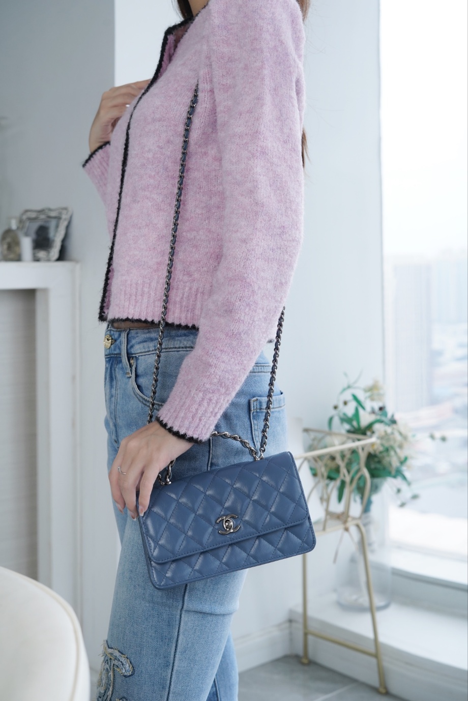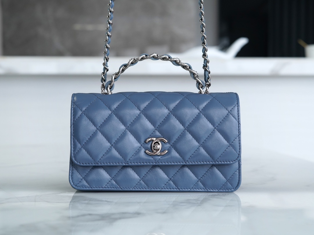 신상 큐빅핸들 오르간 스모그 블루 모델번호 AP3566 부드러운 소가죽으로 내마모성과 광택이 있으며 가죽 체인에 자잘한 큐빅 포인트 심쿵 woc보다 두께감이 하나 더 있는 가방으로 데일리 용량까지 만족함 외관이 색다른 재미를 선사하며 디테일을 잡아주어 세련됨 사이즈:11*18.5*6cm
