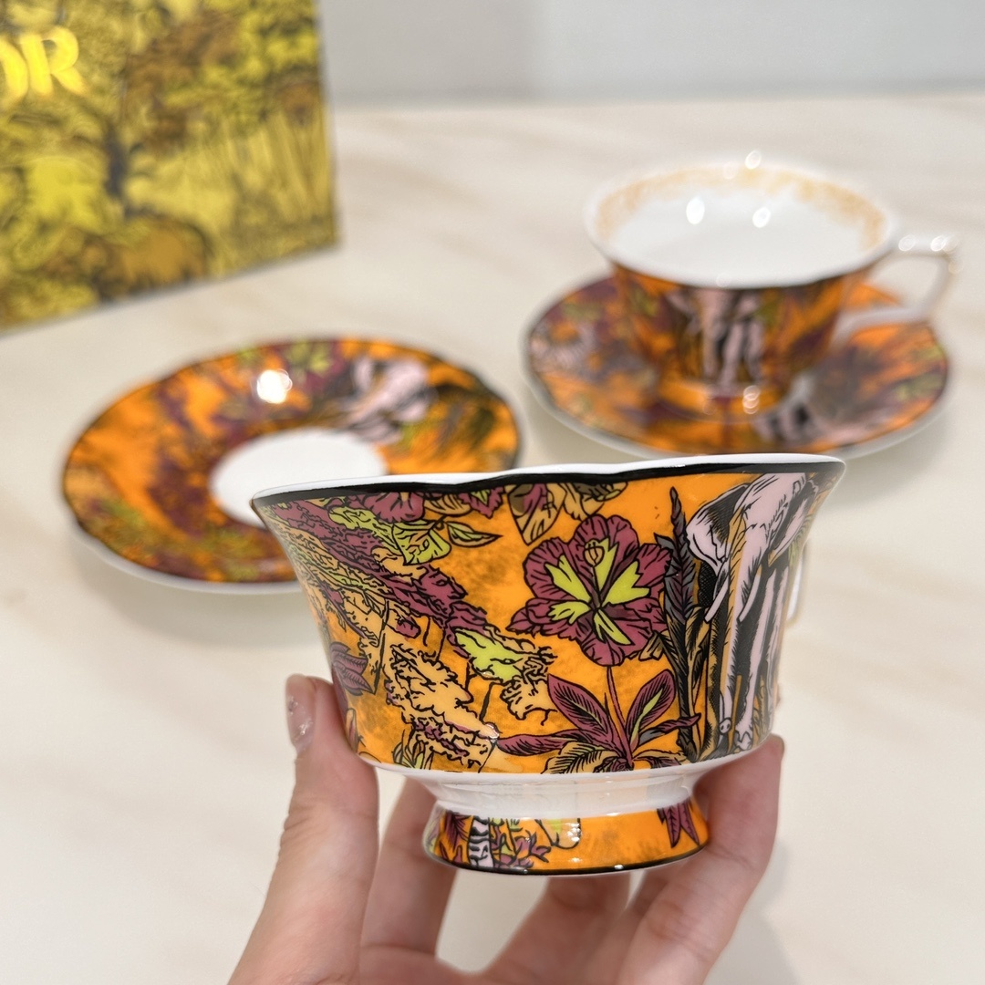 Dior 커피잔 2인세트 Jardin Indien의 플라워 디자인과 리메이크된 클래식한 주이 프린트 핑크, 옐로우, 블루, 오렌지 등 화려한 색상으로 인도적인 동식물을 기리고 있음 이 매혹적인 창의세계의 다채로운 매력을 더욱 돋보이게 함 카운터 투 에디션 포장