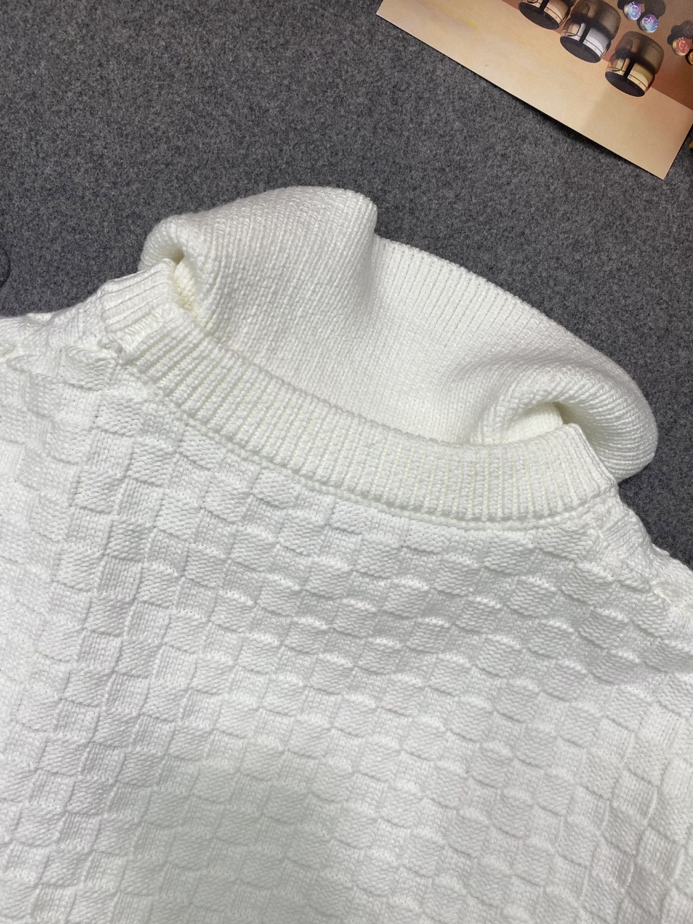 화이트 바둑판 격자 디자인으로 분위기까지 너무 고급스러움 폴리아미드와 비스코스 혼방 원료를 사용하여 흡습성과 통기성이 있고, 탄력이 있고, 도톰하고 푹신푹신하고 사진을 보시면 질감을 느끼실 수 있음 실은 통심, 밑단 곡파돌기 스티치 공법으로 기계의 정밀도를 엄격하게 조절하고 바깥의 통과 안쪽의 심지가 동기화되지 않으면 폐편이 되고 일반 짜임으로 3개만 만들 수 있는 공법으로 정말 부드럽고 고급스러움