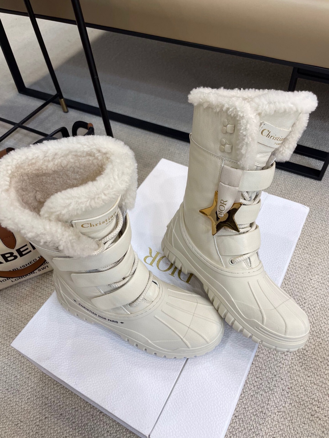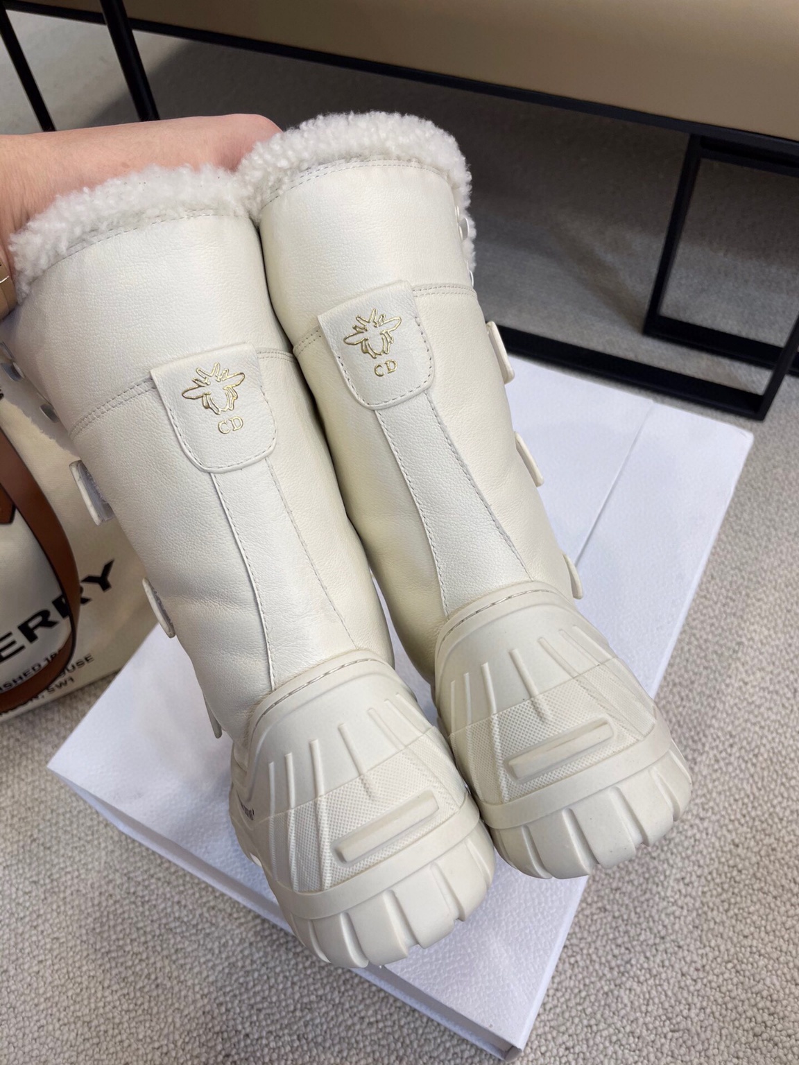dior 가을 겨울 패션 털부츠 스포티한 느낌의 밑창 스타일링으로 밑창과 몸체가 일체형으로 오픈된 젤 소재로 방수가 되어 관리가 용이하며 쿨링 만점 부츠 끈 디테일로 코디 가능성을 높임 송아지 가죽 신면에 안감 퍼 일체 소재