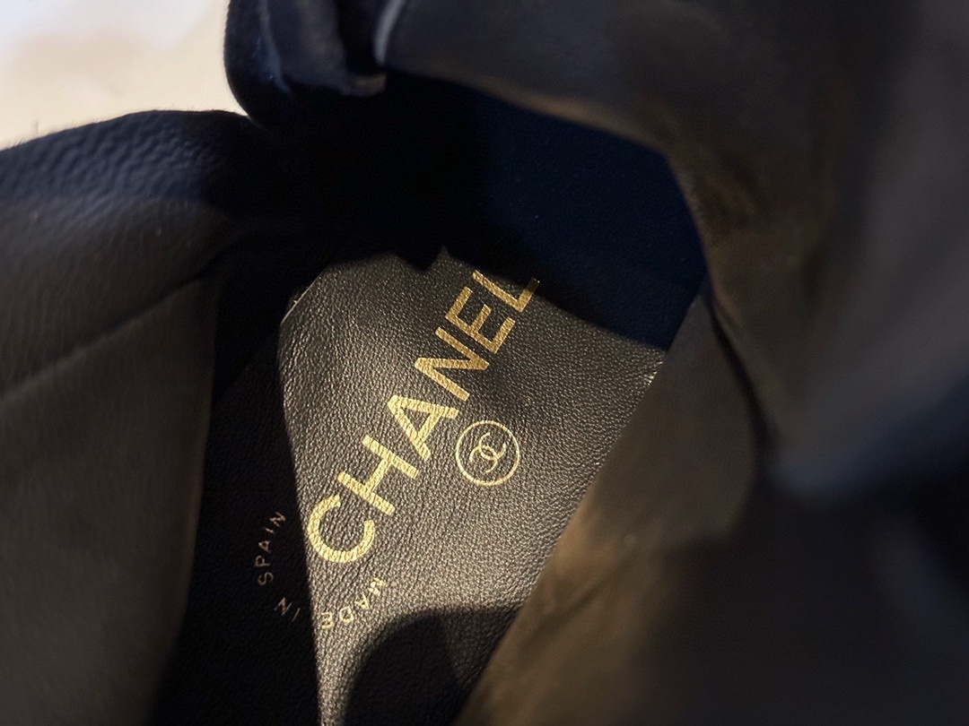 샤넬 레더 라이더 부츠 산양가죽 패치 에나멜 디자인으로 절제되면서도 질감을 잃지 않고 심플한 블랙 컬러도 입체감 있게 연출 아이코닉 마름모 차선과 철물 조합 맞춤 오리지널 소재 라이트 왁스 끈 깔끔하고 심플하면서도 지성적인