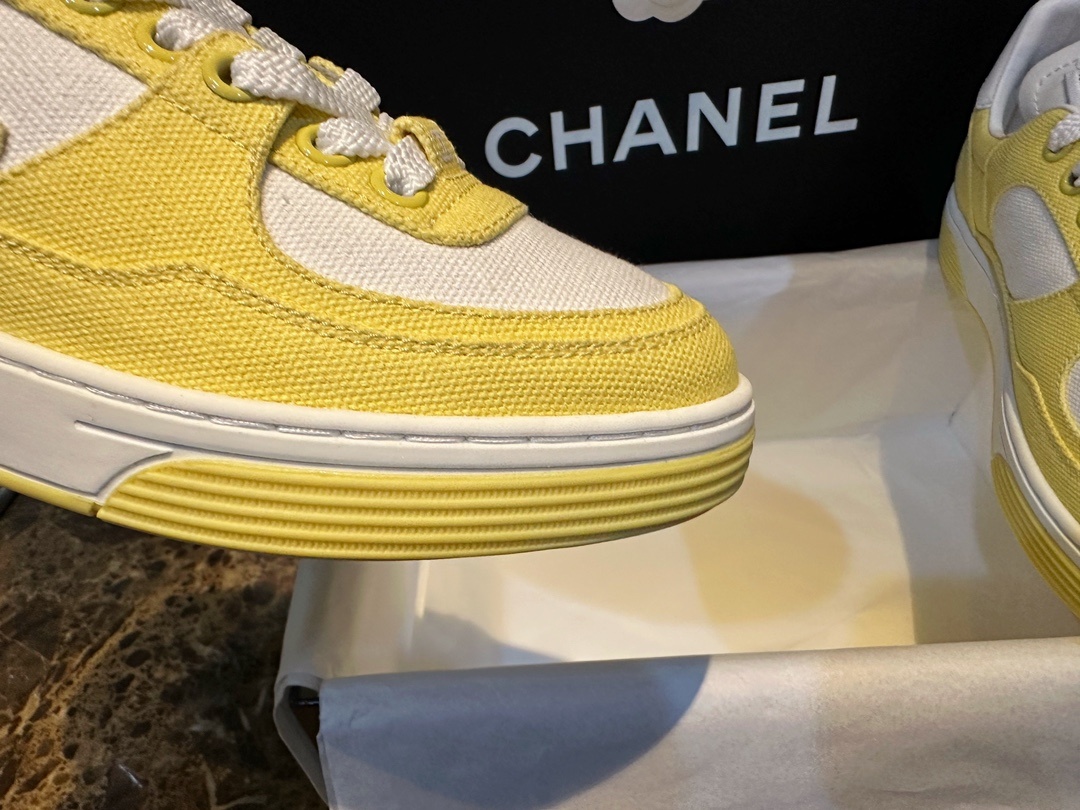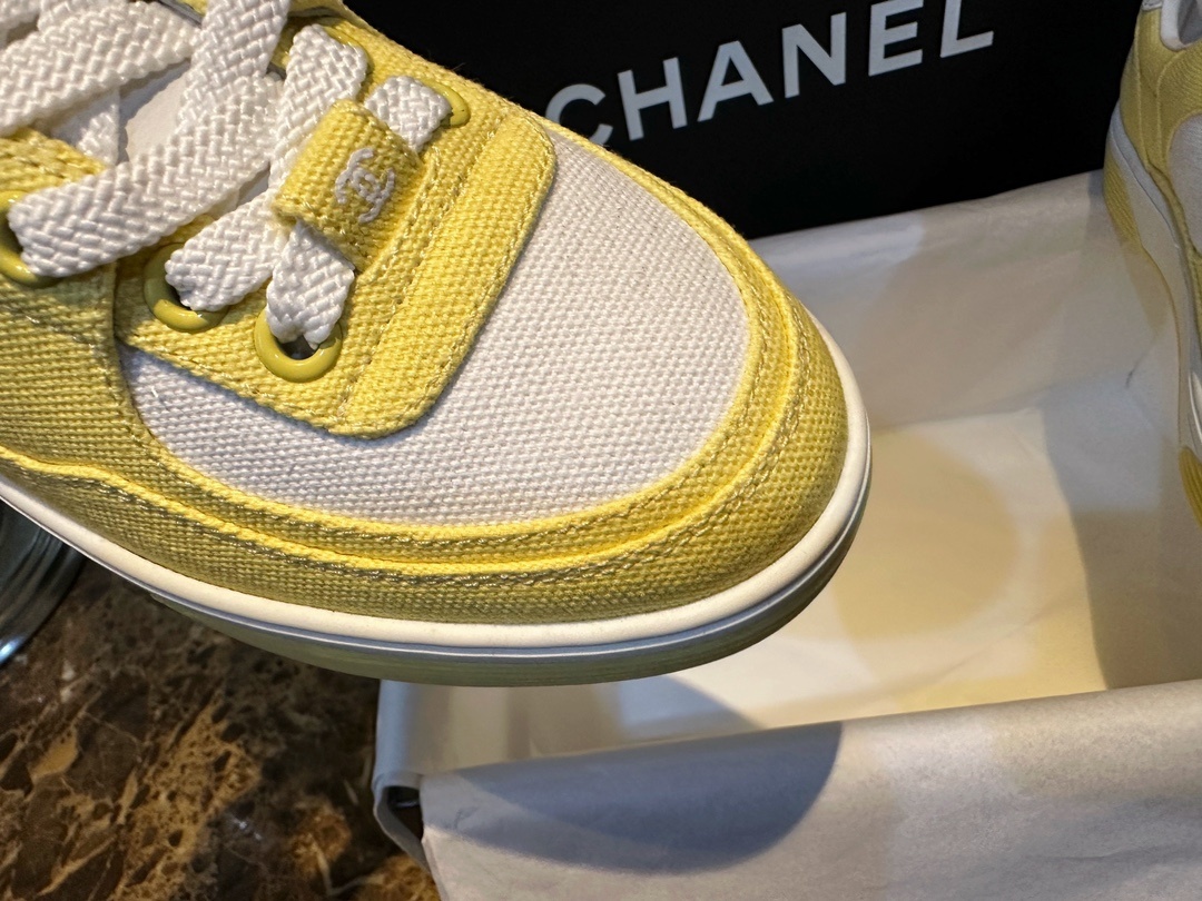 Chanel 24c 스니커즈 고밀도 황백 캔버스 투피스 + TPU 성형대저 발이 편하고 예뻐서 완벽해요 병아리색상은 겨울에 광택 효과가 있어요