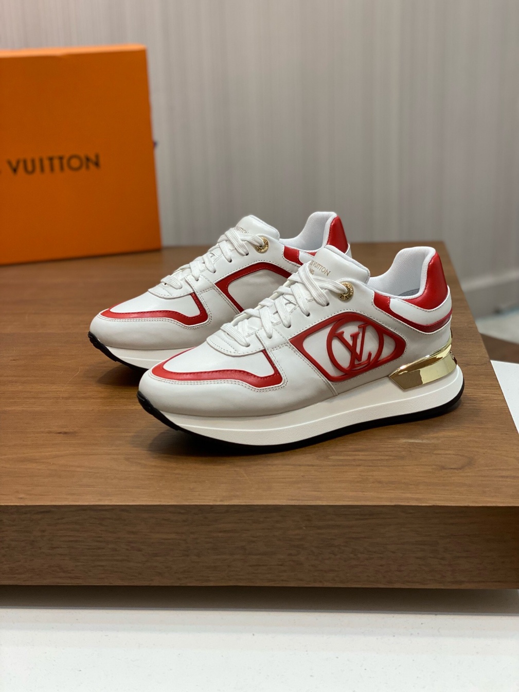 루이비통 뉴 스니커즈 원단품질, 라방공예 신발 겉면에 부드러운 소가죽 패치 적용 망사 안감 핏이 세련되고 심플한 분위기, 원판 대창