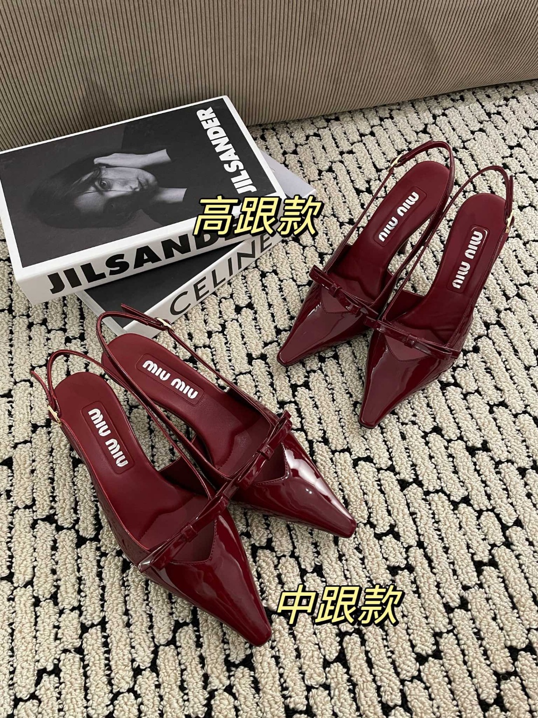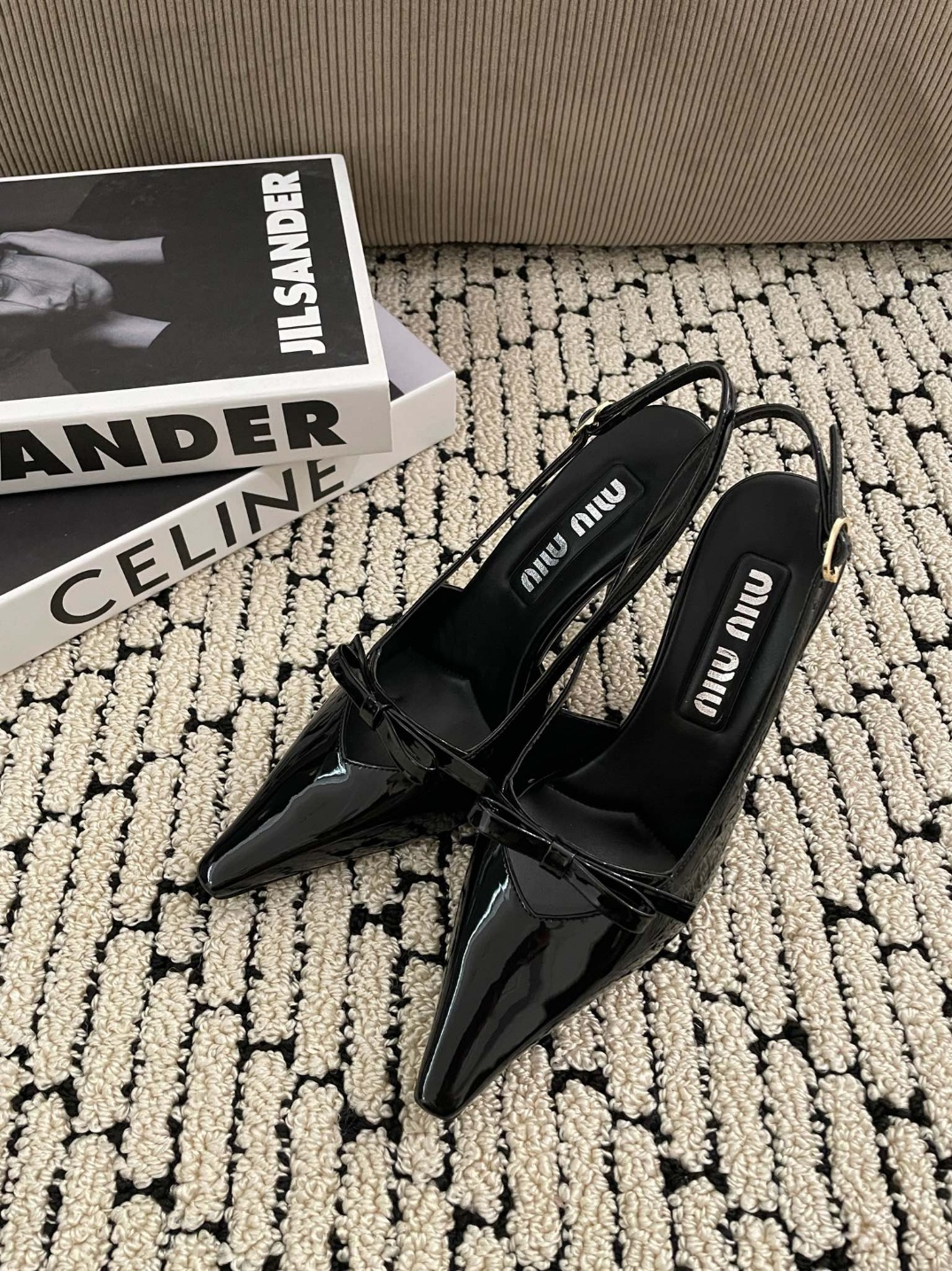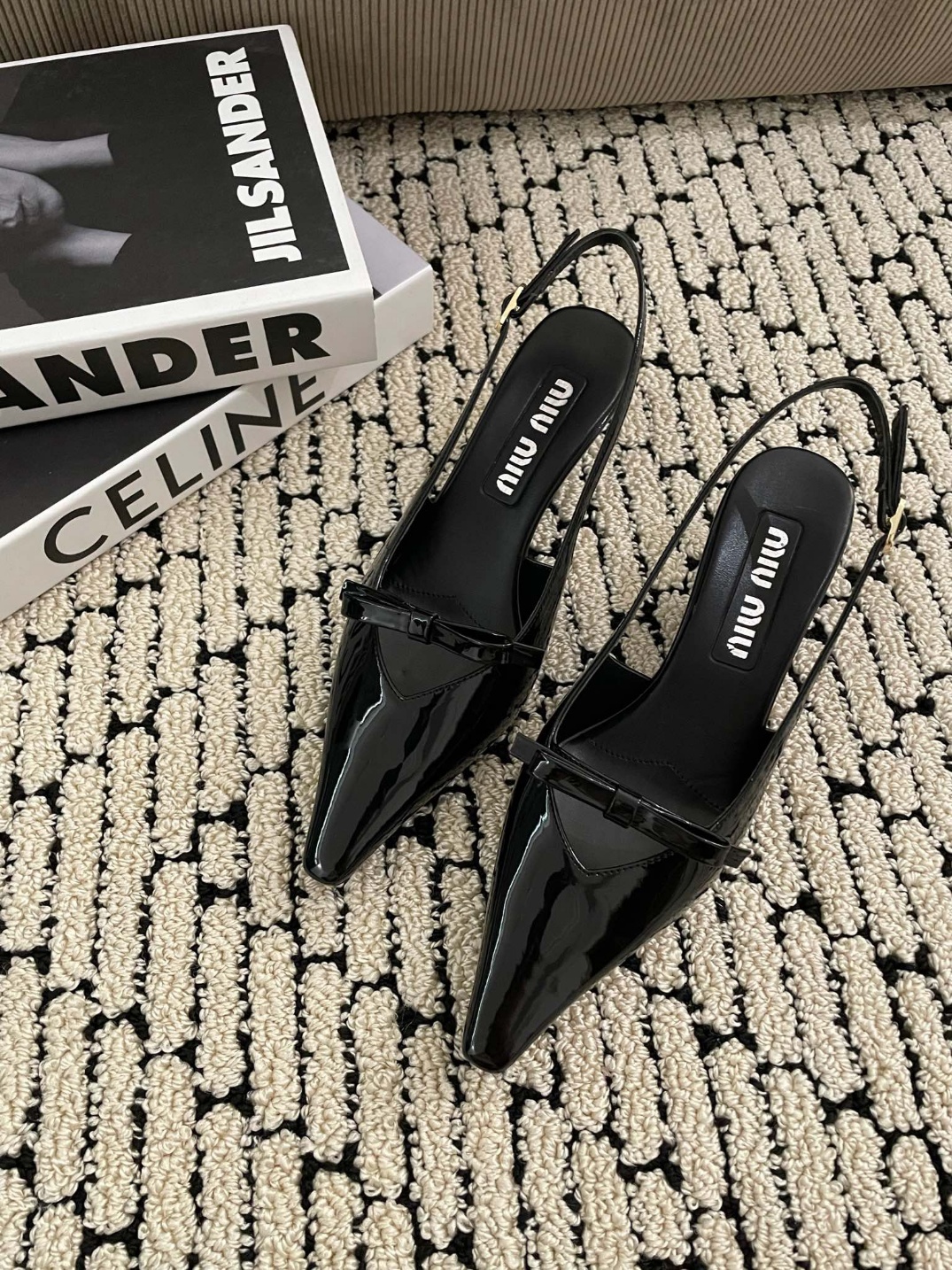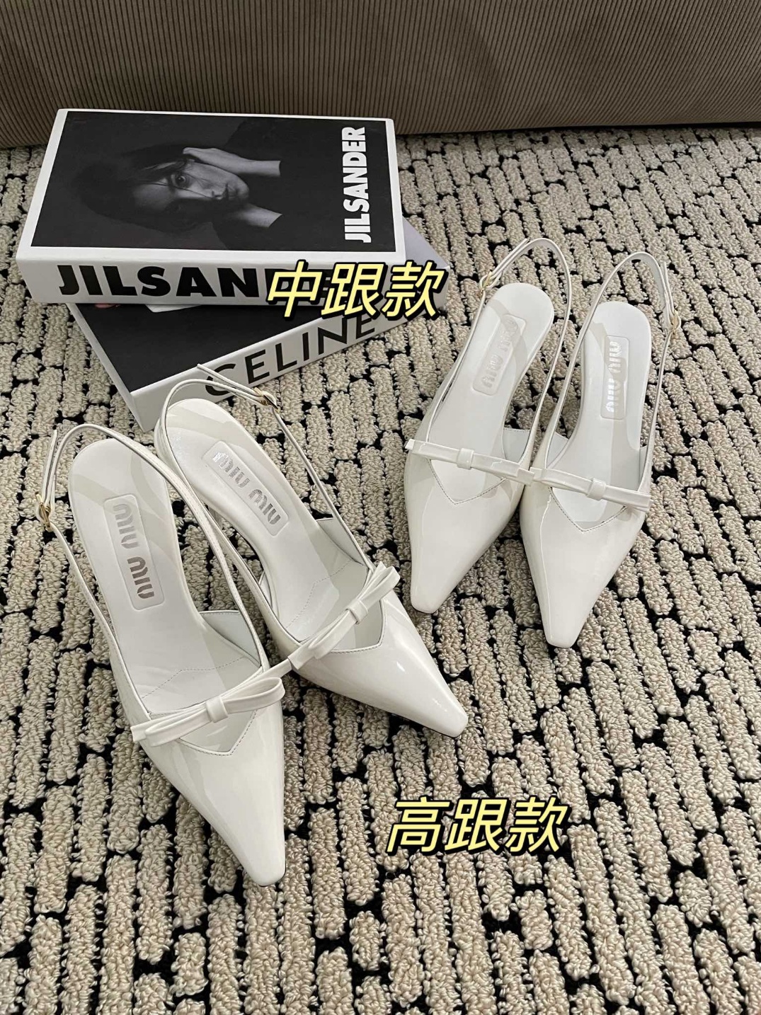 미우미우 24ss 리본 뒤꿈치 힐 샌들 런웨이 인플루언서 대박 핏이 너무 완벽하고 작은 리본을 매치하여 우아하고 대범하며 다리라인을 잘 잡아주어 봄여름 필수 아이템 수입 리얼 가죽 통굽 굽높이: 5cm, 8.5cm