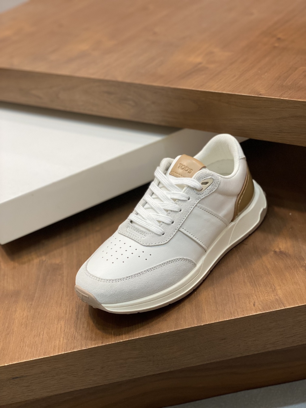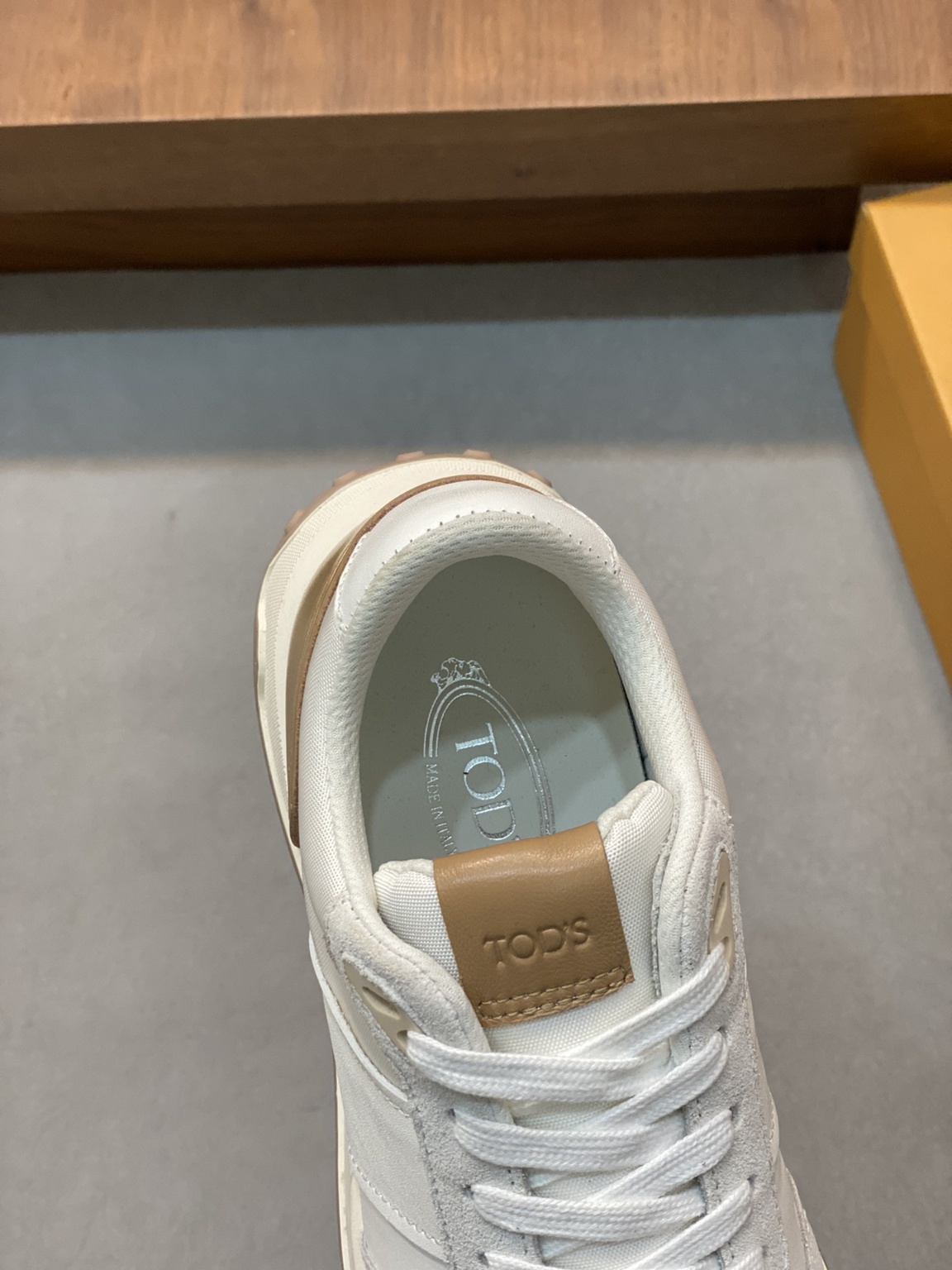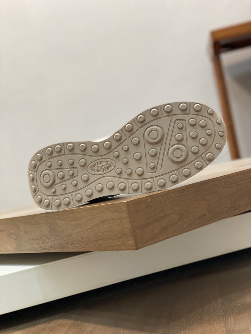 TODS 토즈 레더 패치워크 원단 운동화 스포티한 스타일과 토즈의 클래식한 요소를 믹스하여 런닝화 디자인에 도시적인 디테일을 더한 운동화 인체공학적 디자인의 슈즈는 부드러운 스웨이드 소가죽 콤비 매끄러운 송아지 가죽으로 제작되었으며 패치워크 저지 원단, 슈즈 펀칭 디테일 사이드 포인트 Tod's 이니셜 로고, 실버 로고 소가죽 발판 가벼운 EVA 고무 아웃솔 포인트 러버빈 오리지널 1대1 개발