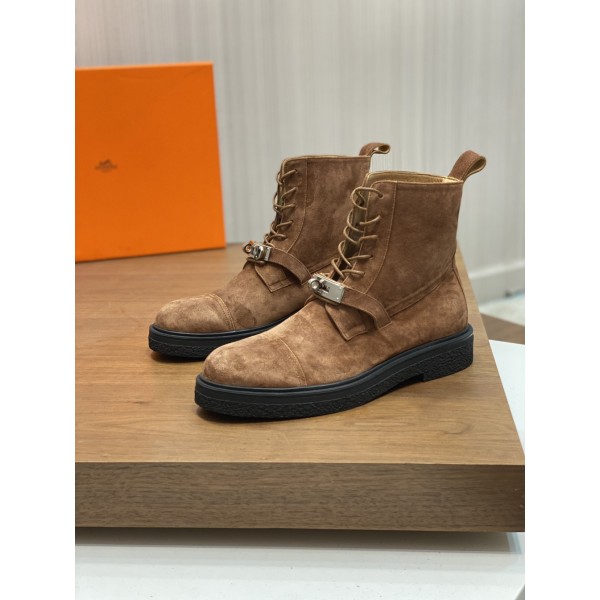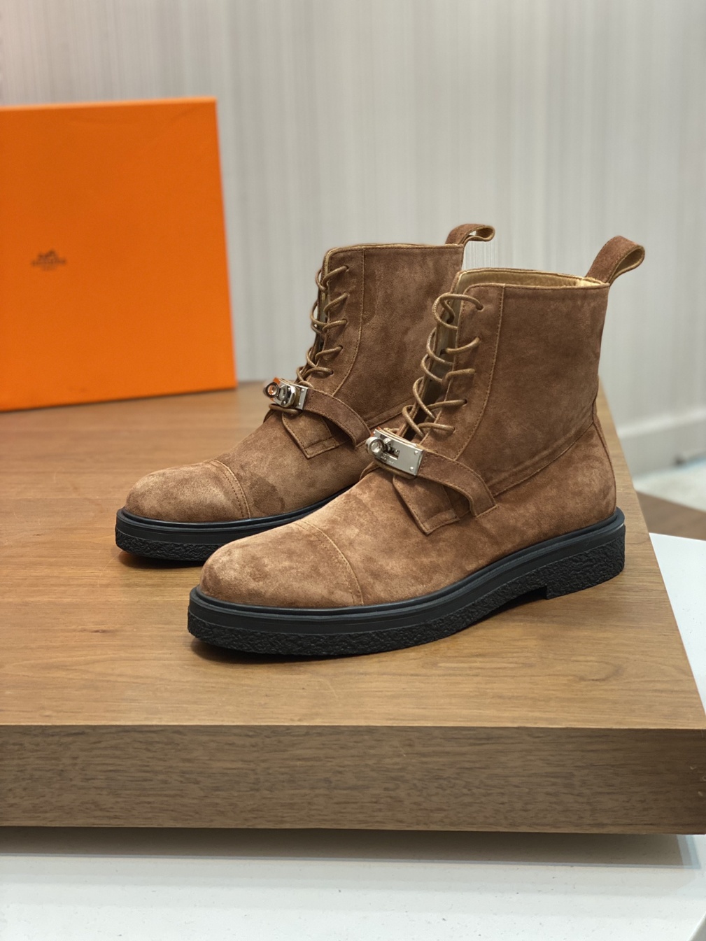 에르메스 H 추동남성 펑크 및 누드부츠 모직 송아지 가죽과 누드 부츠 기능성 팔라듐 플래팅 켈리 버클과 홈 아웃솔을 매치 격식을 차리지 않는 스타일을 완성