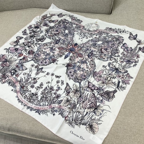 디올 23 New 쥬이 나비 프린트 스카프 페트로 루포(Pietro RUffo)가 디자인한 화이트 & 핑크 Buiterfly Around the world 프린트 클래식한 나비 모티브가 돋보이는 라인 L'envol des papillons devoile nos dlesirs auxetoives로 포인트 화이트 실크 트윌 원단으로 정교하게 제작된 양면 디자인에 멀티 컬러 패턴과 핸드메이드로 포인트를 주어 Christian Dior 로고가 격조를 높여줌 목에 매거나 히잡으로 사용하실 수 있으며 세련된 디올 스타일로 연출가능 소재: 100% 실크 size: 90x90cm
