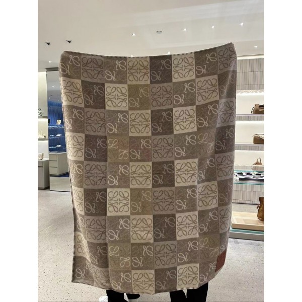 로에베 바둑판 담요 해외고정 DG 클래식한 바둑판 격자무늬 그라데이션 카드 포인트 브랜드 가죽 로고는 고급스럽고 편안하며 넉넉한 사이즈로 케이프 담요는 가족여행의 필수 아이템 선물봉투+케이스세트 소재 울 90% 캐시미어 10% size 170x135cm