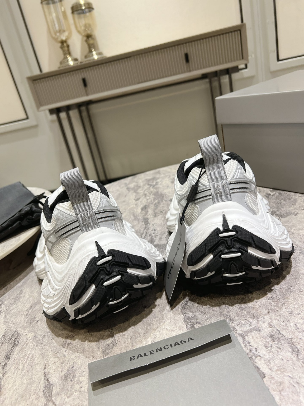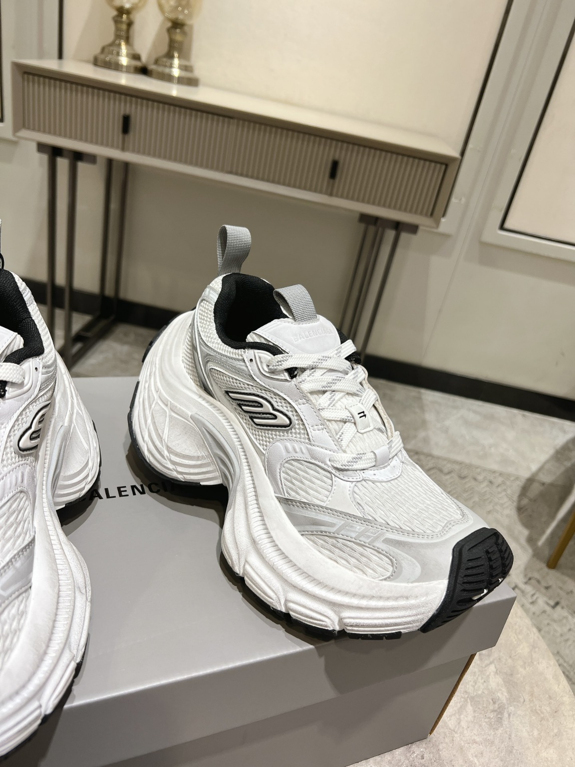 발렌시아가 10xl 커플 최신형 스니커즈 프리미엄 런닝화 오리지널 구매 개발 발렌시아가 트랙과 러너 두 가지 신발의 아이디어를 따온 것으로 트랙 슈즈의 외틀을 떼어내면서 러너의 유선 스타일링과 트랙의 납작한 앞코를 그대로 계승한 셈 겉감: 오리지널 커스텀 수입 소가죽 원단+메쉬 안감: 오리지널 맞춤형 에어맥스 대창: 오리지널 몰드오픈 초경량 MD 콤비 고무창 두께: 5CM