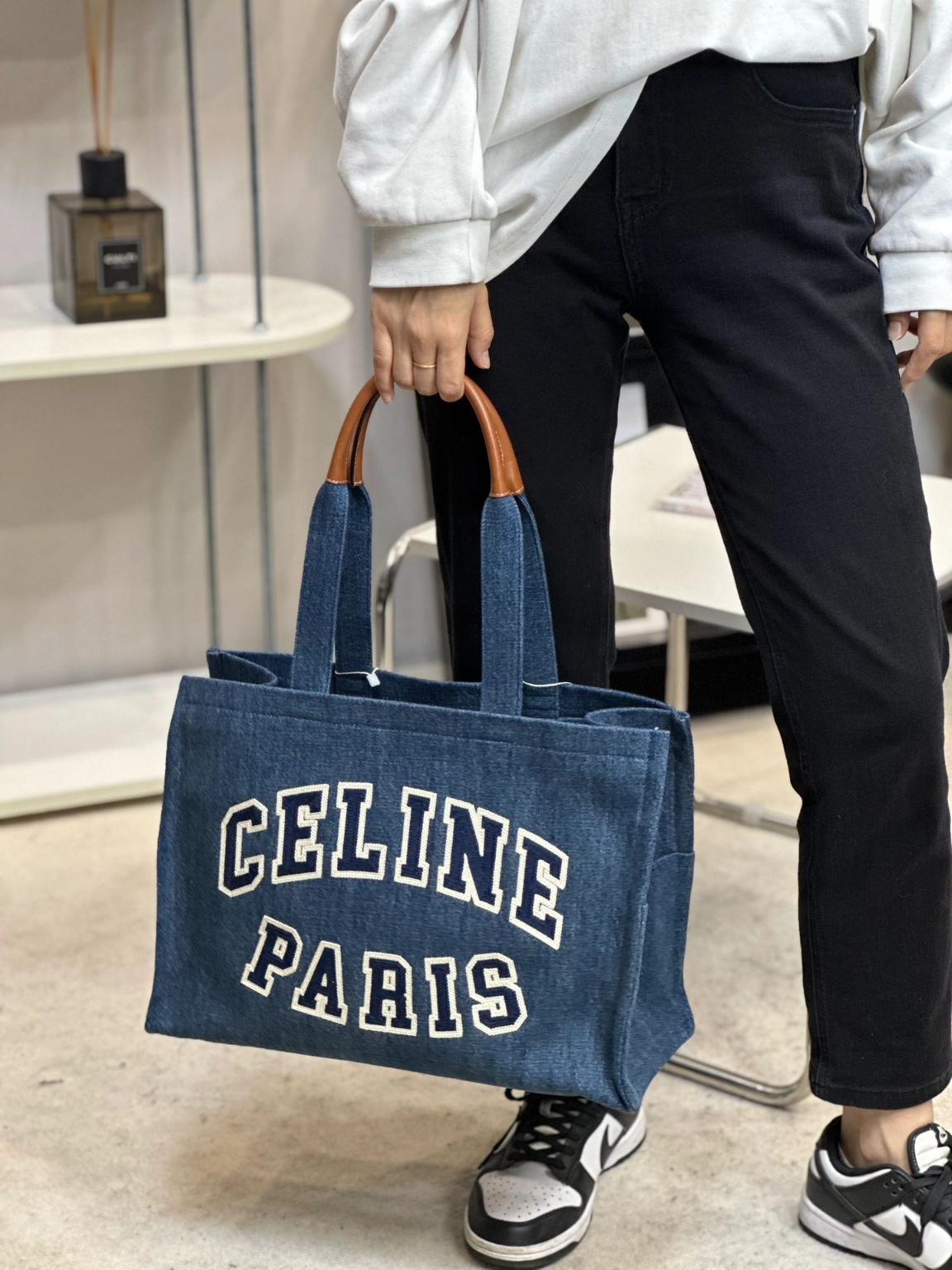 셀린느 데님 토트 라지 데님 소가죽 랩 데님 라이닝 토트 숄더 사계절 어디에나 잘 어울리는 심플한 스타일 스타일리시하고 실용적이고 예뻐요