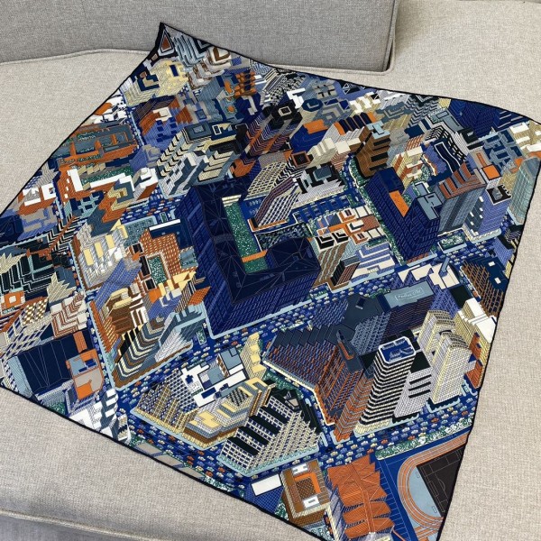 에르메스 퐁텐풍모 스카프 창작의 기원 이 디자인에서 마마두 시세(Mamadou Cisse)는 폰탄의 역동적인 미래주의적 비전을 보여줌 18세에 세네갈을 떠나 프랑스로 떠난 뒤 독학으로 그림을 그리기 전까지 여러 직업을 가졌음 그는 경비원으로 야근을 하는 동안 볼펜으로 그의 첫 작품을 만들었음 위에서 내려다본 이 유토피아적 건축 경관은 이 도시의 창의적인 활력을 느끼게 함 다채로운 색감과 생동감 넘치는 기하학적 조형물이 눈에 들어옴 소재: 실크100% size: 90x90cm