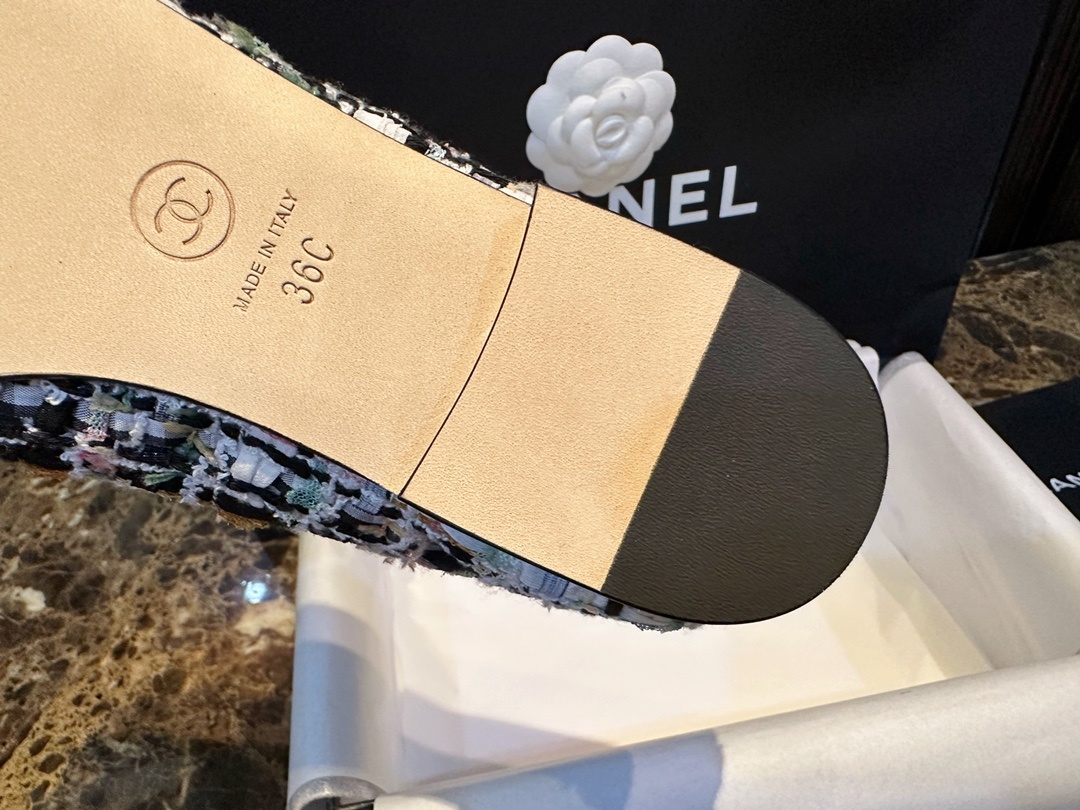 샤넬 23P 웨빙레이스 발레슈즈 블랙 앤 화이트 톤의 짜임 레이스 니트 레이스에 블랙 트리밍 순수한 물염 양가죽 안감, 이태리 리얼 가죽 바닥 레이어드 개성있는 슈즈, 유니크한 니트가 심플한 발레 슈즈를 사계절 매치하기 좋은 아름다운 아이템으로