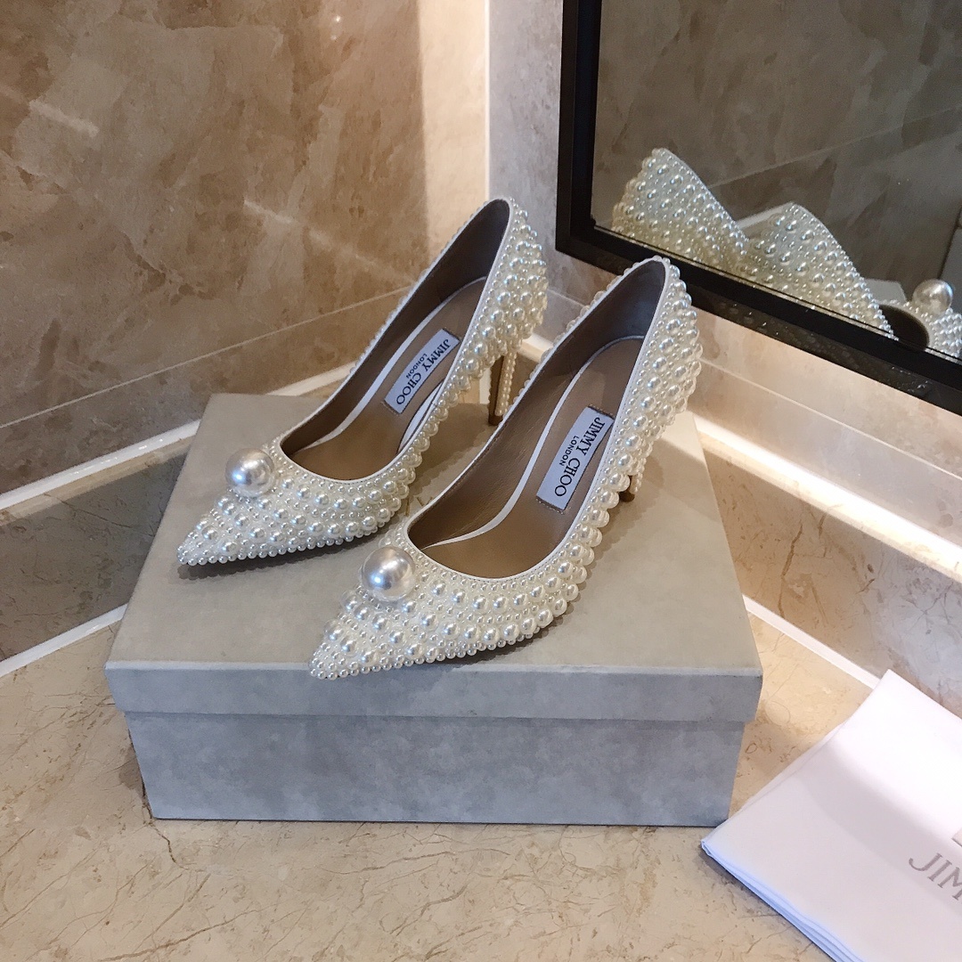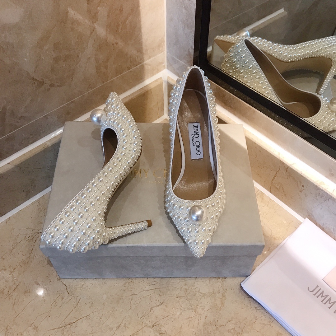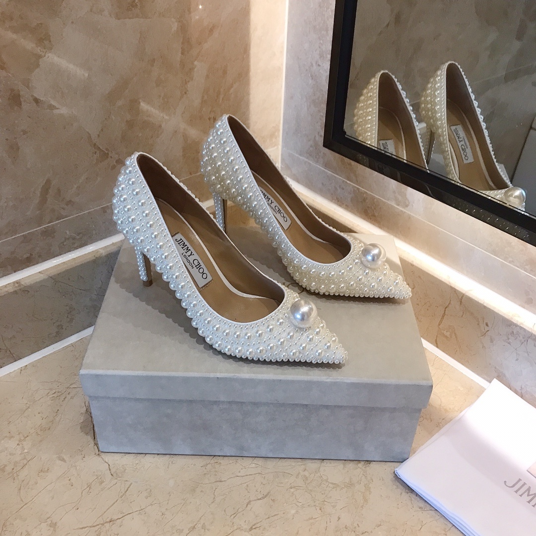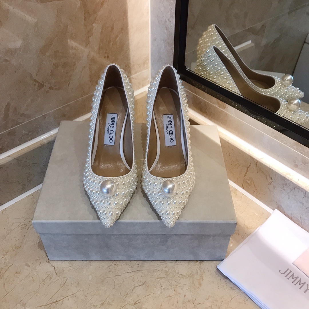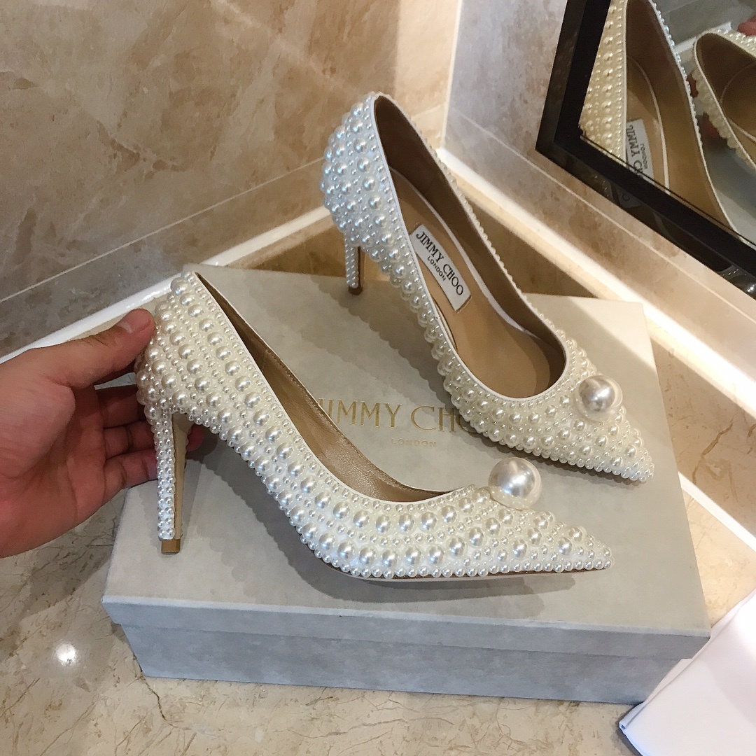 지미추 금전의 업그레이드된 백진주힐 단독 구매대행 품질 새로운 오피셜 업그레이드 최상위 버전 풀 라인업 맞춤 구두 올핸드메이드 진주 속받침 오리지널 수입 양가죽 이탈리아 수입 리얼 가죽 통굽 굽: 8.5cm