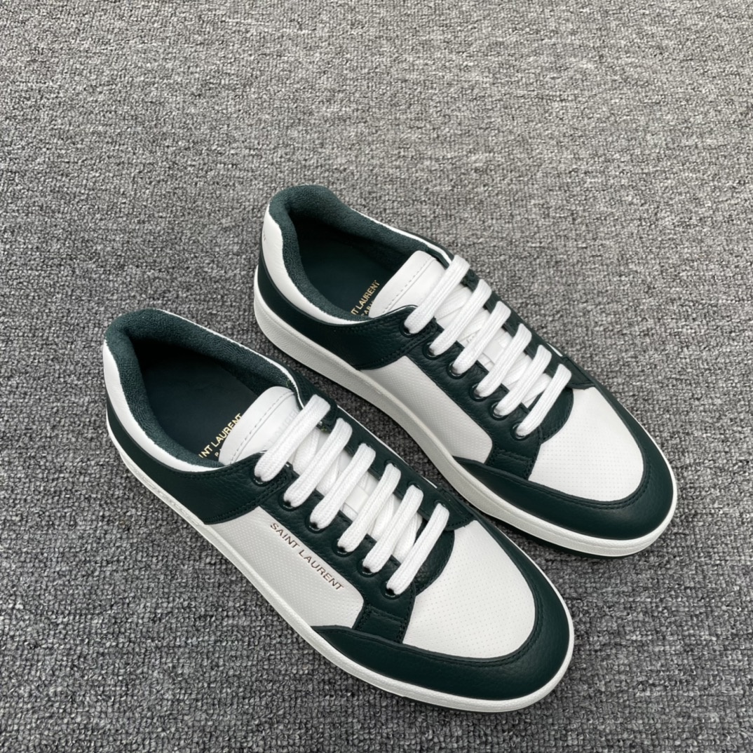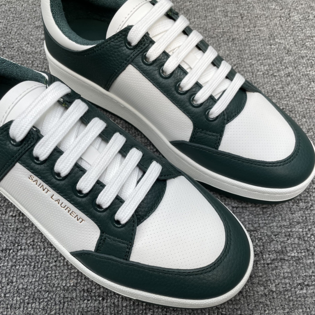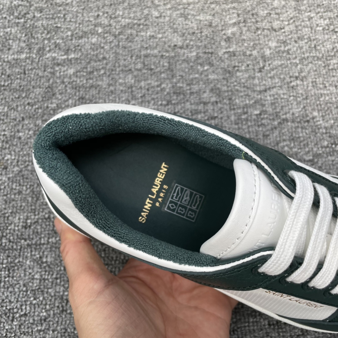 생로랑 로우 스니커즈 SL61 공식 홈페이지 신규 브랜드 플래그십 스토어 동기화 이태리 원배알 소가죽+전면 스터드 포인트 다공성 가죽 스트랩 장식에 골드 생로랑 로고 뒷면에 SL61 로고를 각인 로고 안쪽 Tw 소프트 타월 패브릭 유연성과 통기성, 랩핑성 강화, 미들 커버 없는 스타일링 메모리폼 매트리스, 발은 더욱 편안하고 가벼우며 친환경 미끄럼 방지 고무 투톤 아웃솔과 바닥 둘레의 실루엣이 신발 전체의 편안함을 더해주며 견고함을 디테일로 완벽하게 표현