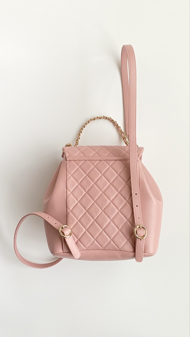소량의 원피, 바로바로 출하, 리얼 ZP급 24P 신색 라지 DUMA 백팩 전국 독점 오리지널 스퀘어 마이크로 드롭 리치 소가죽 마른 장미 가루, 샴페인 골드 버클 사이즈 25x22x18cm