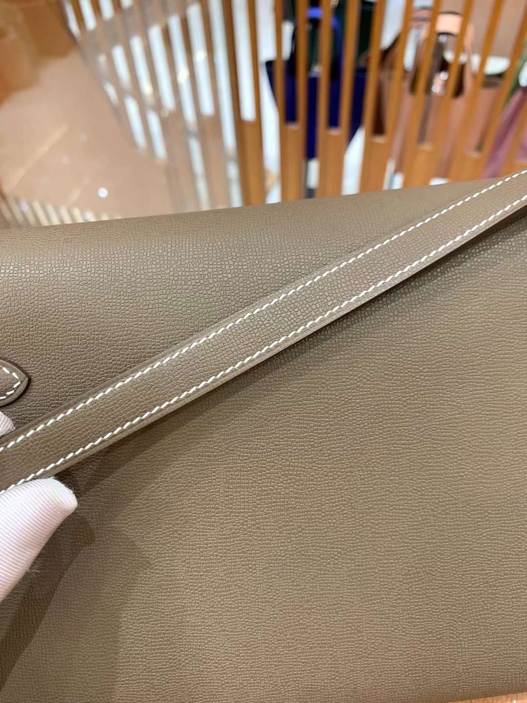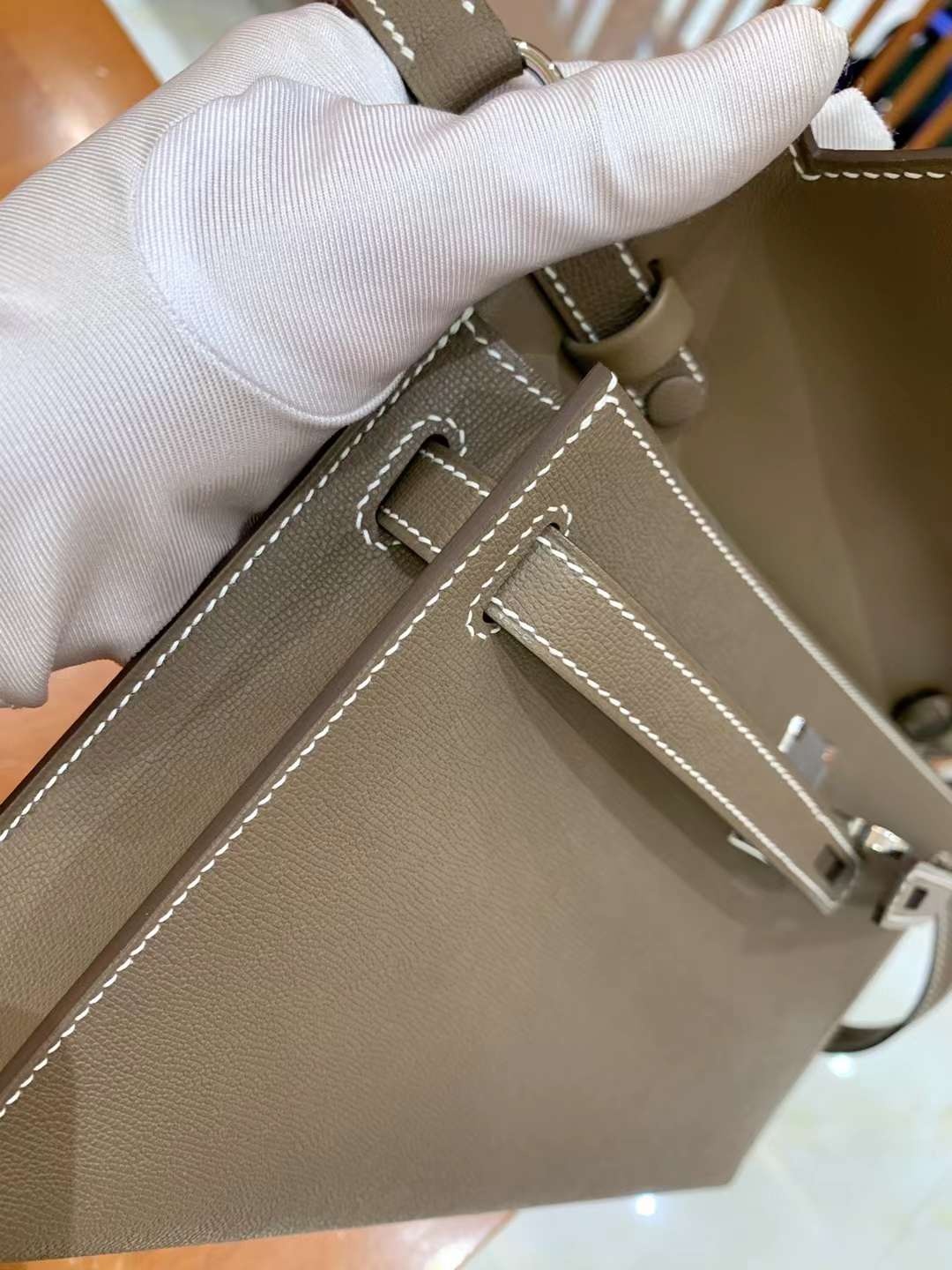 켈리 엘란 코끼리 그레이 마담 가죽 실버 버클 오리지널 밀랍실, 최고급 핸드 스티치 size 27.5 15 5cm