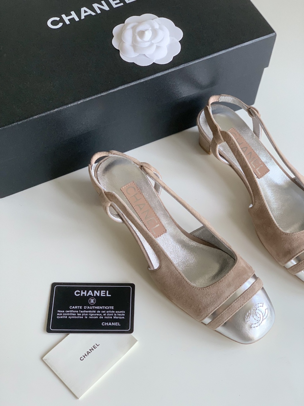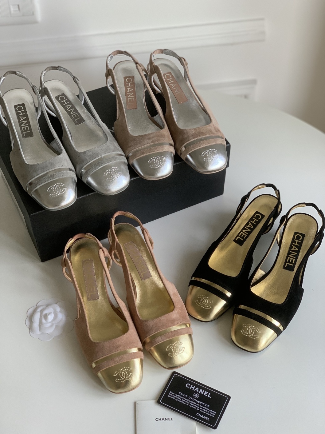 샤넬 24C 신상 굽 낮은 스퀘어 토 슈즈 클래식 슬링백보다 훨씬 편해요 슈즈 스웨이드 패치 아웃솔 소가죽 내피, 양가죽 통굽