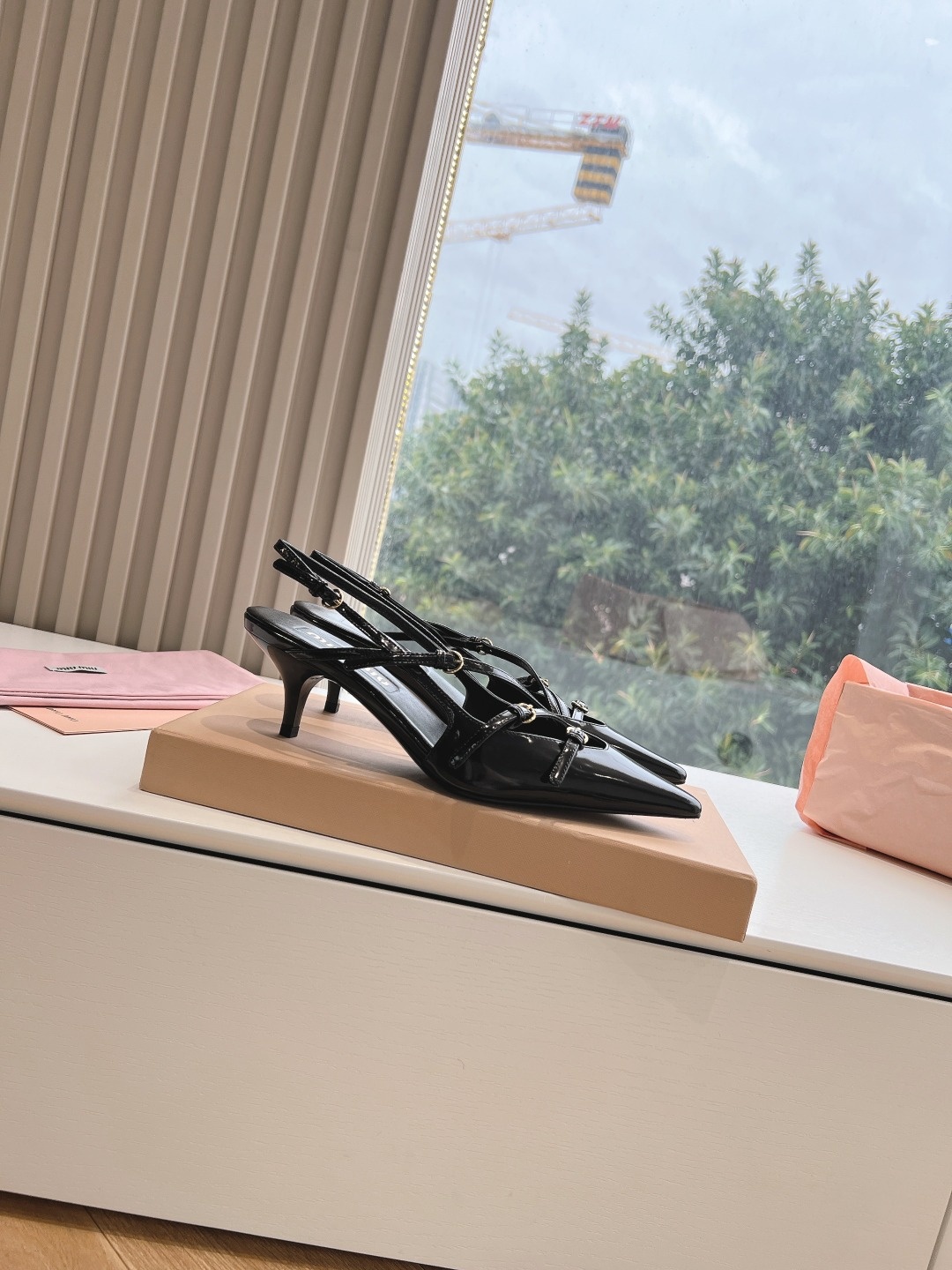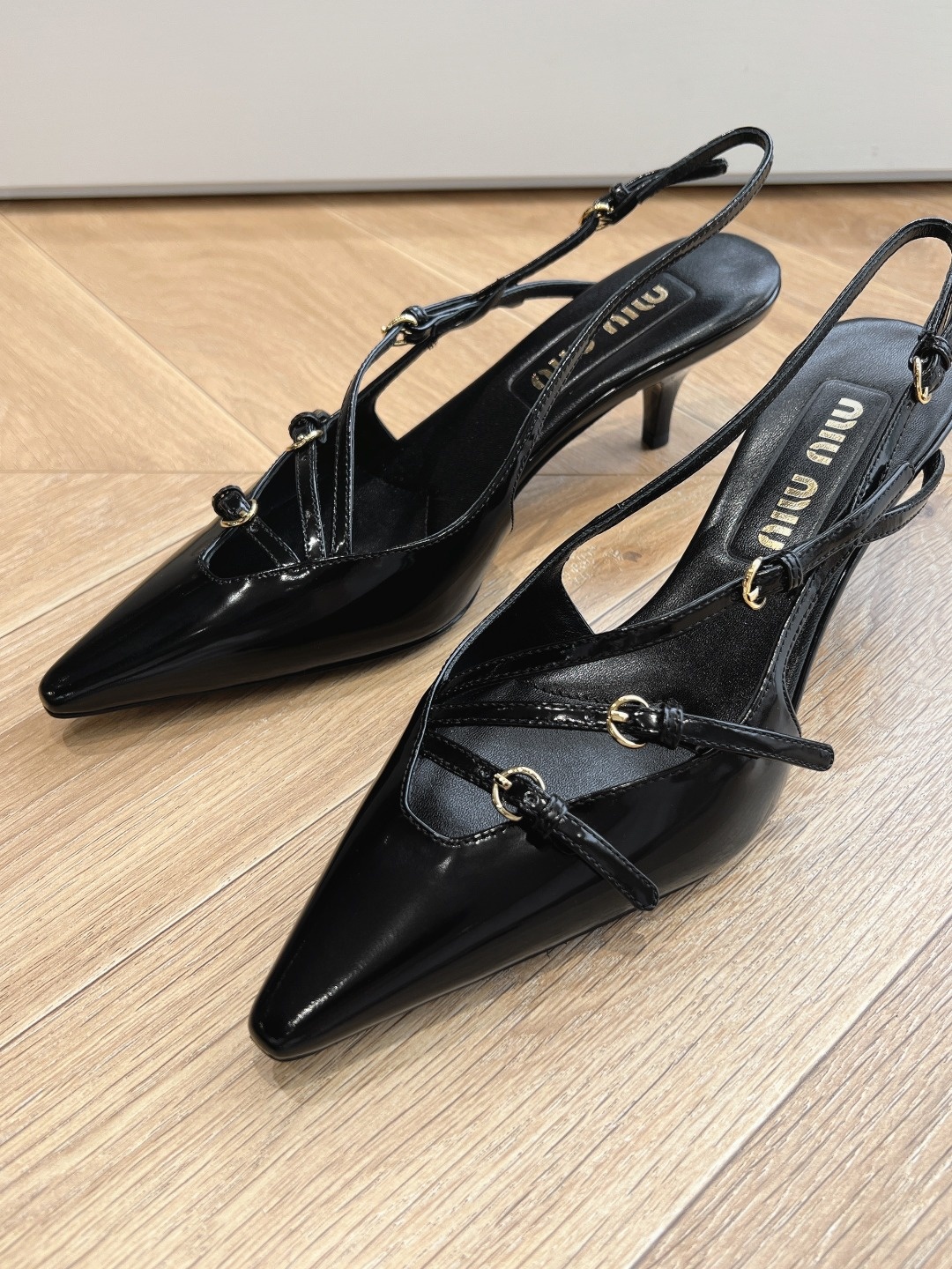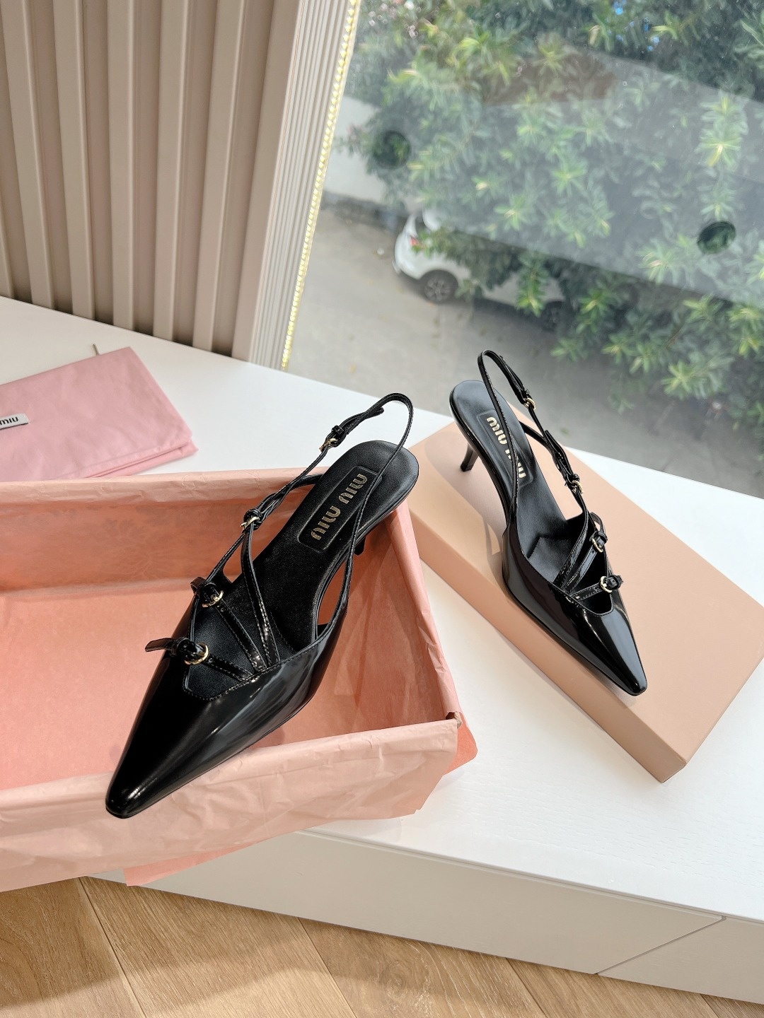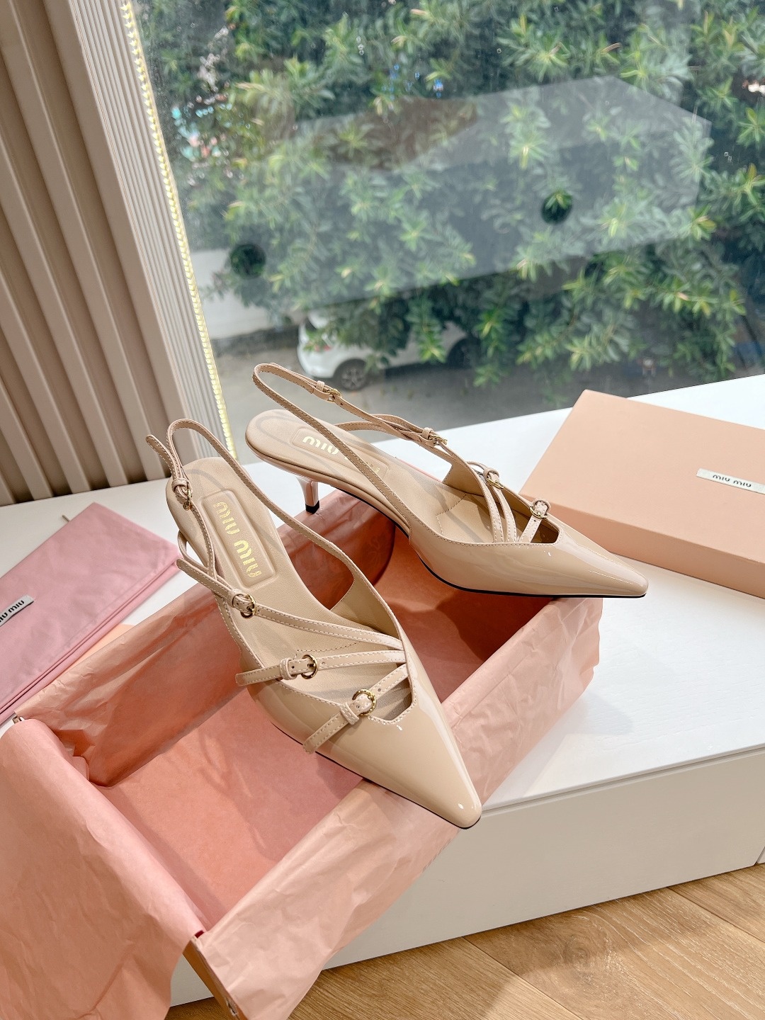 오리지널 1대 1 복각 프리미엄 미우미우 24SS 꼬깔 단화 슬링백 펀칭팁, 리본, 섹시함까지 고루 갖춘 힐 겉감: 수입 에나멜 안감: 양가죽 굽: 약 3CM