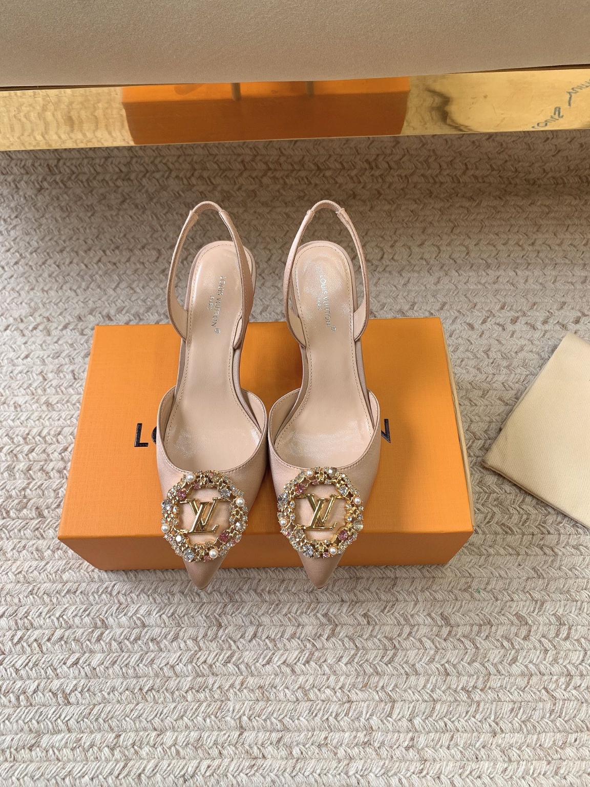 루이비통 SS24 신상 실크 큐빅 슬링백 오리지널 패키지 최고 품질 갑피: 수입 맞춤 실크 원단 안감: 수입 양가죽 대저: 리얼 가죽 대저 굽: 7cm