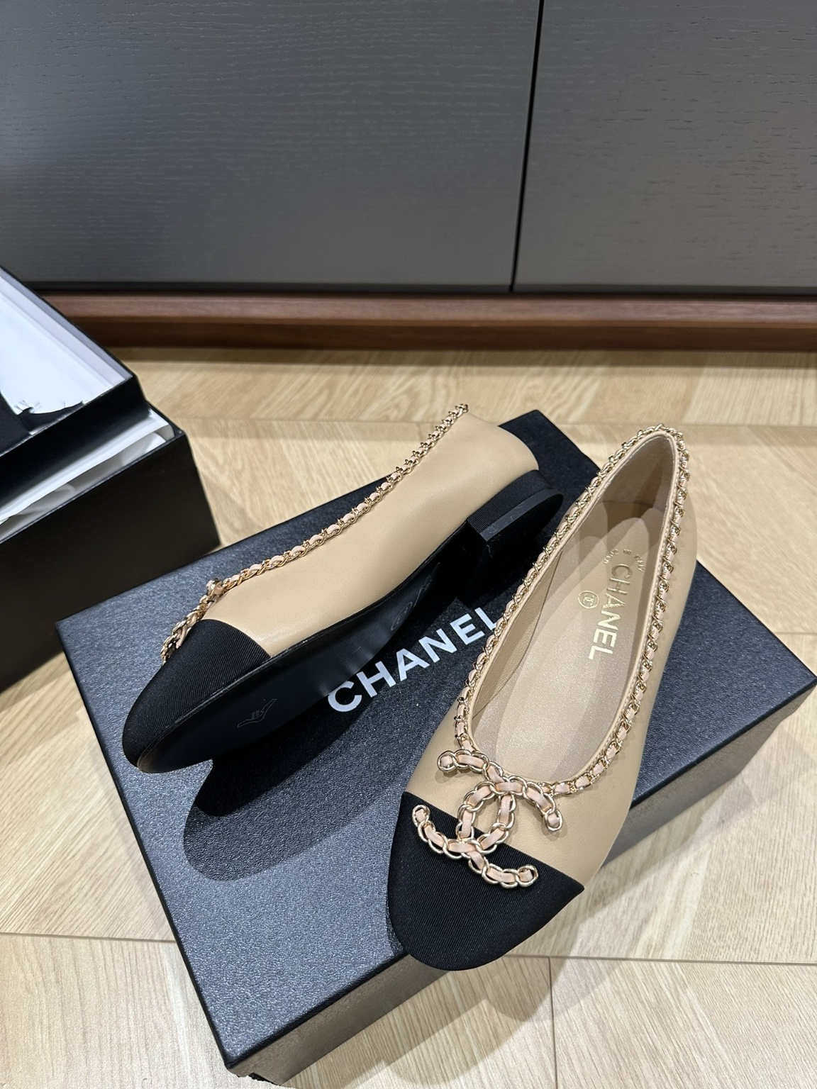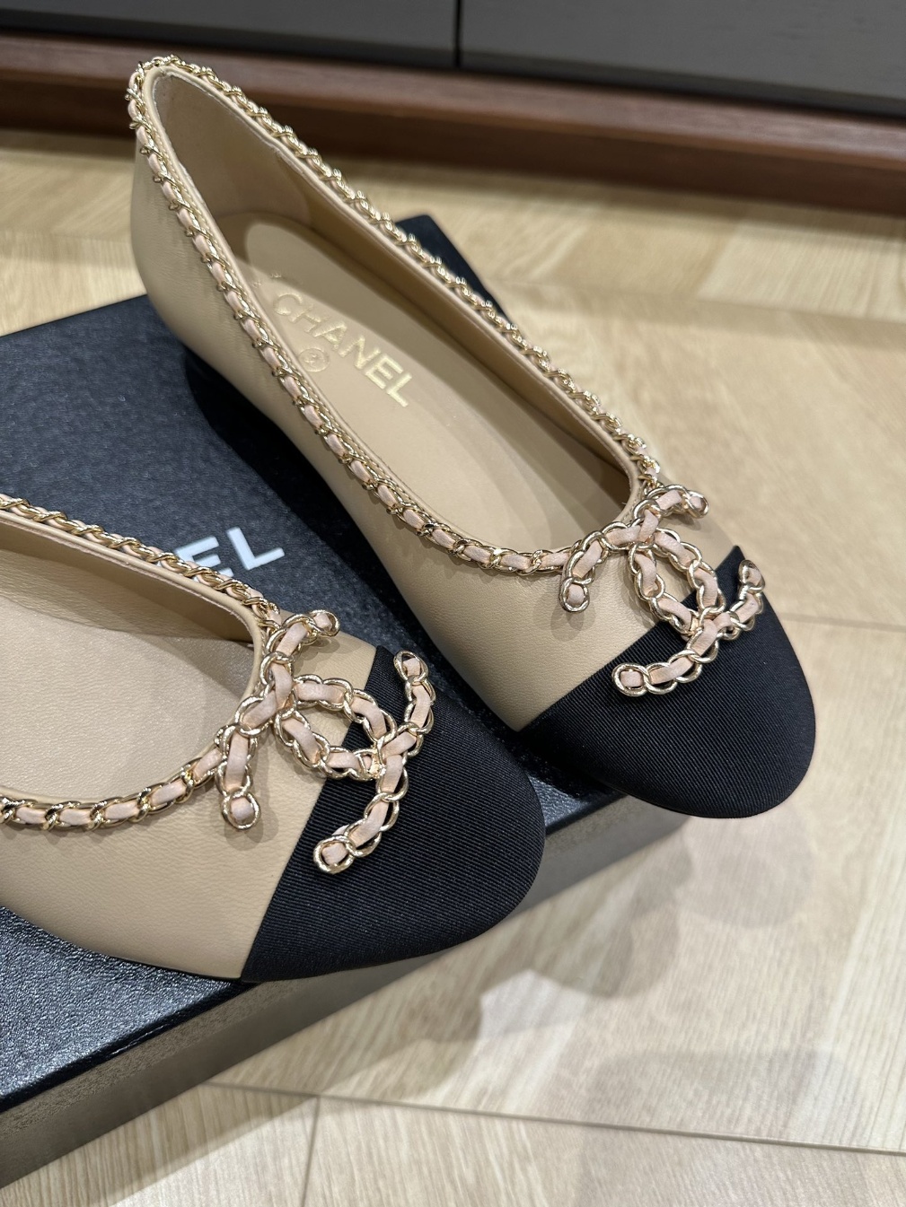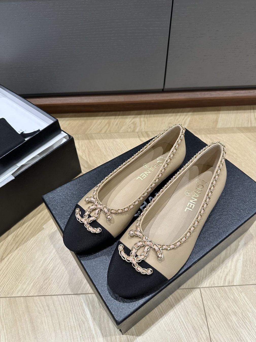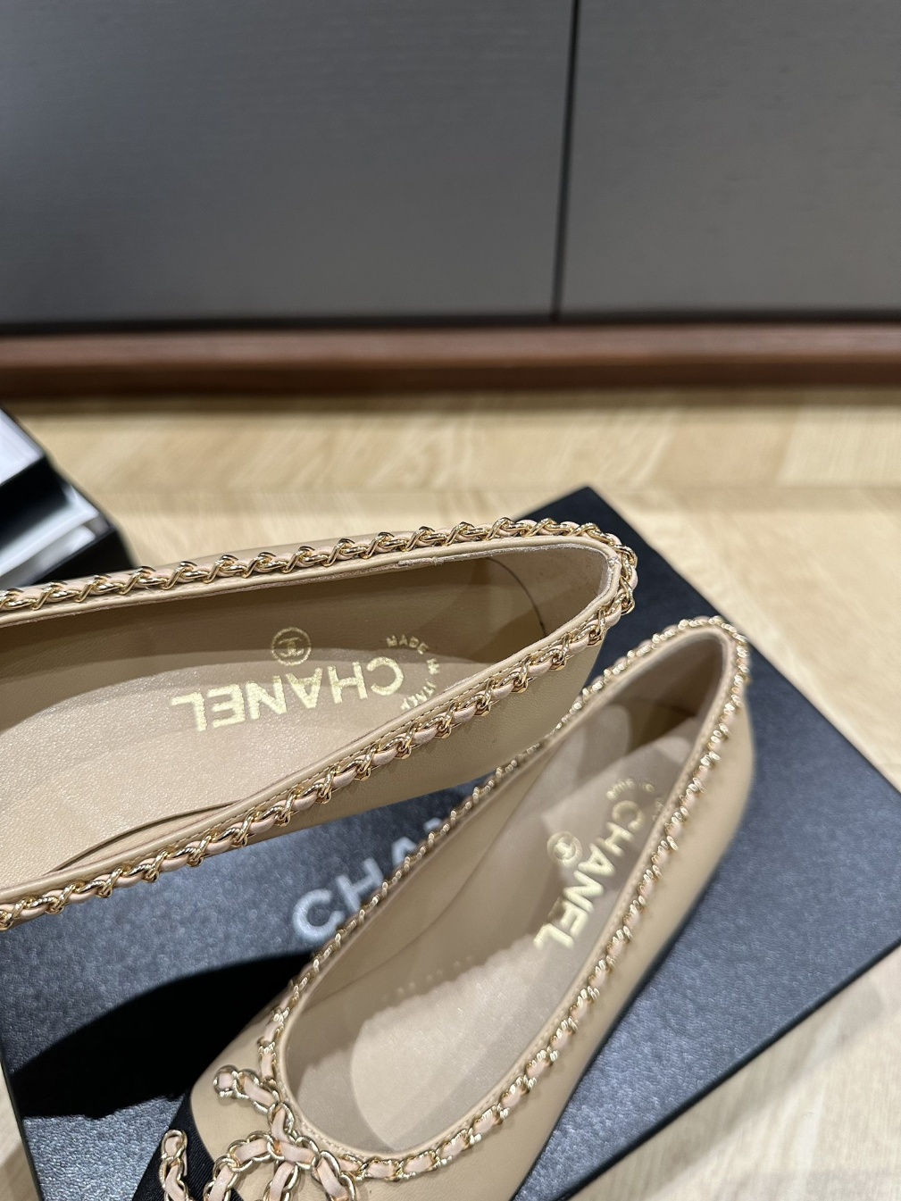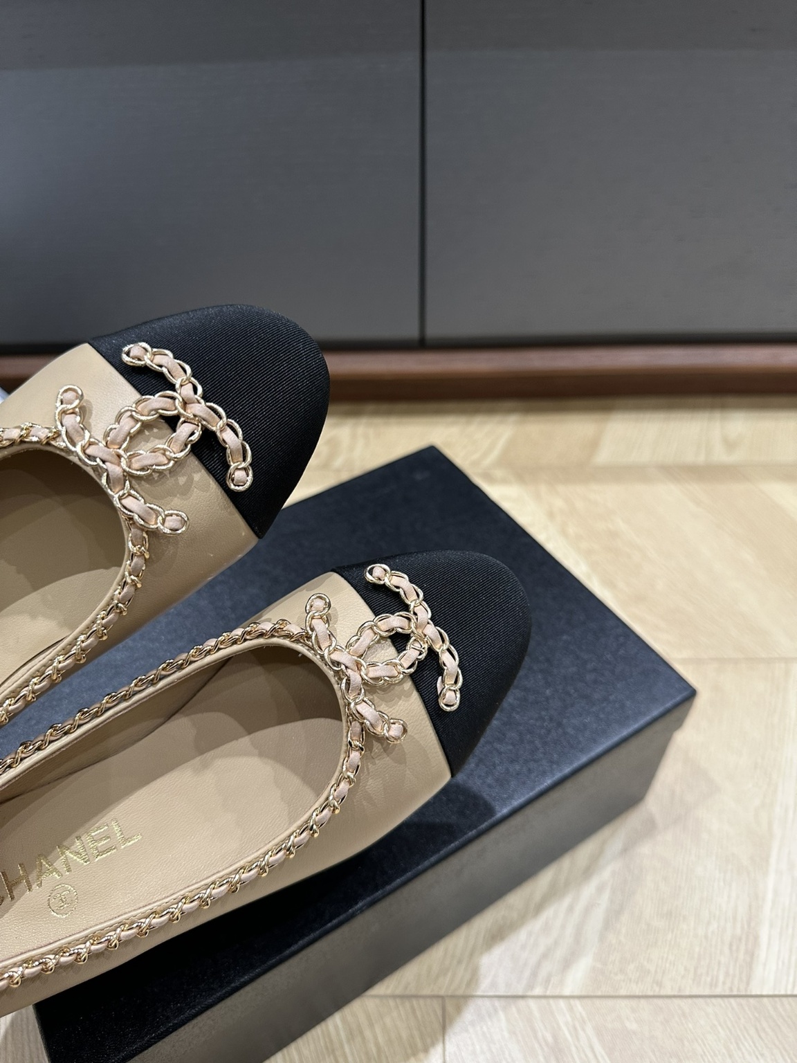 최고급 품질 샤넬 24ss 신상 플랫슈즈 면안감 양가죽, 핸드메이드 가죽 체인 이태리 리얼 가죽