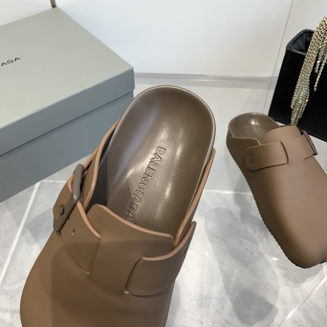 최상급 품질 2024 발렌시아가 선데이 뮬 버켄 시리즈 오버핏 범상치 않은 스타일 패셔니스타 데일리룩 필수 아이템 수입 소가죽/스웨이드 슈즈 오리지널 블랙 소가죽 안감 가죽덮개 가보시/콤비 고무창 3cm 바깥쪽 조정 와이드 스티치 엠보 발렌시아가 레터링