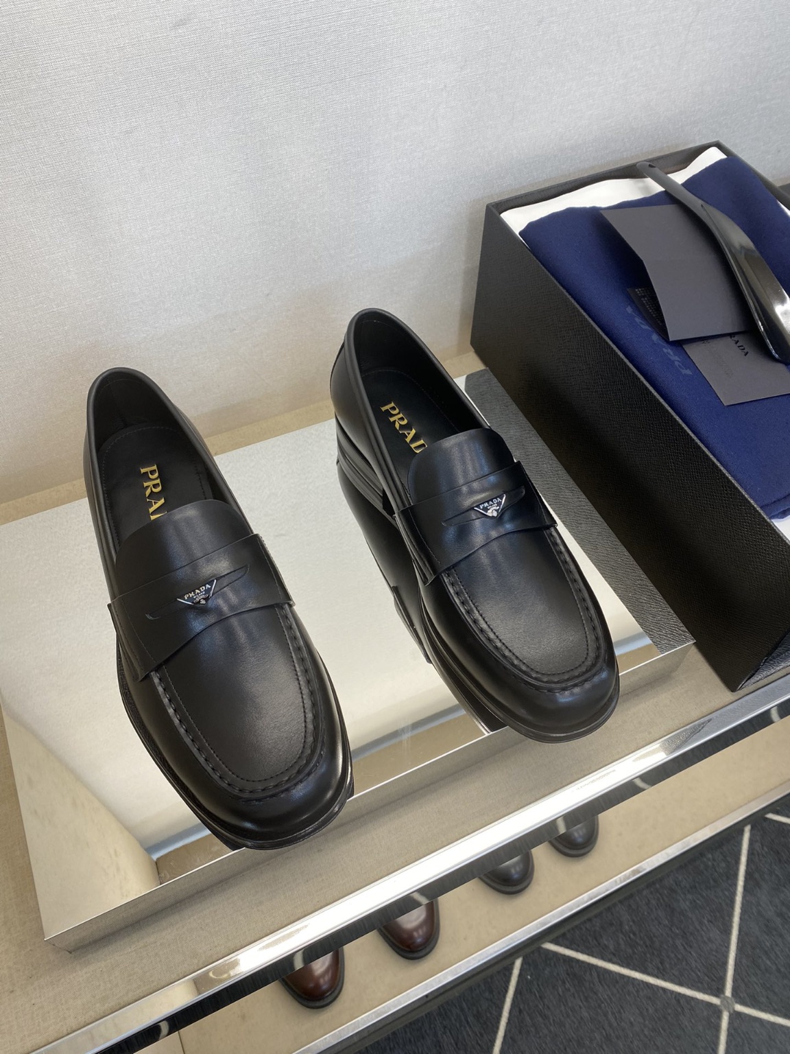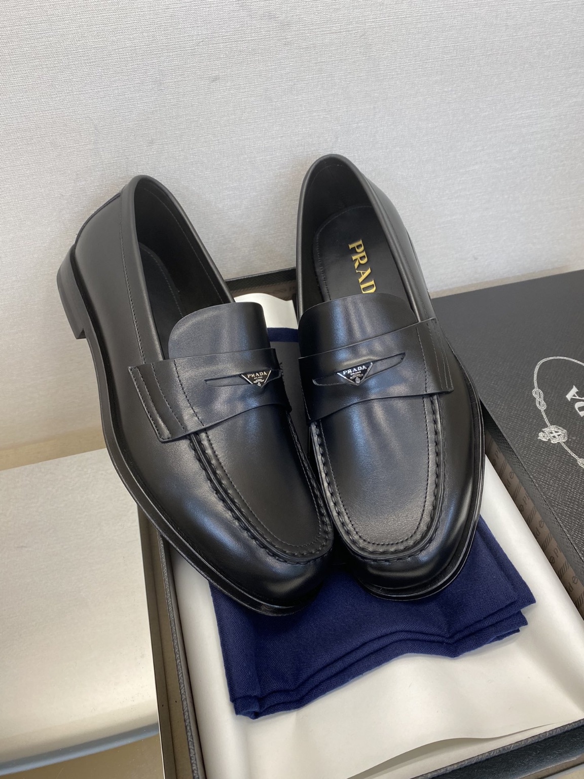 프라다 최고급 공예품 스타일리시 정장가죽 로퍼 매장 동시 발매 최고급 수공예 이태리 수입 원피 소재 송아지 가죽(초강력 질감, 촉감) 안감 수입 송아지 가죽 전 수입 가죽 가죽 대창