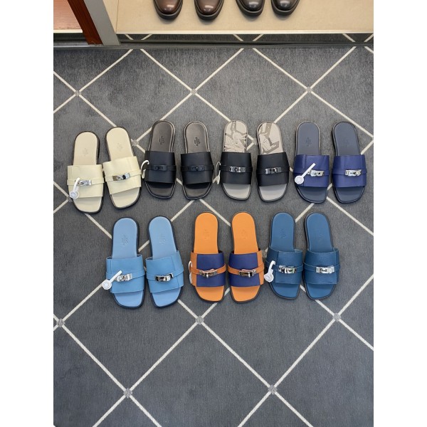 HERMES 고품질, 최고의 공예품 남성 가죽 슬리퍼 에르메스 가브리엘 켈리 샌들 매장 동시 발매 최고급 수공예 100% 오리지널 송아지 가죽 통송아지 가죽 가방 패드 질감 짱 통가죽 두껍게, 완전 편안함