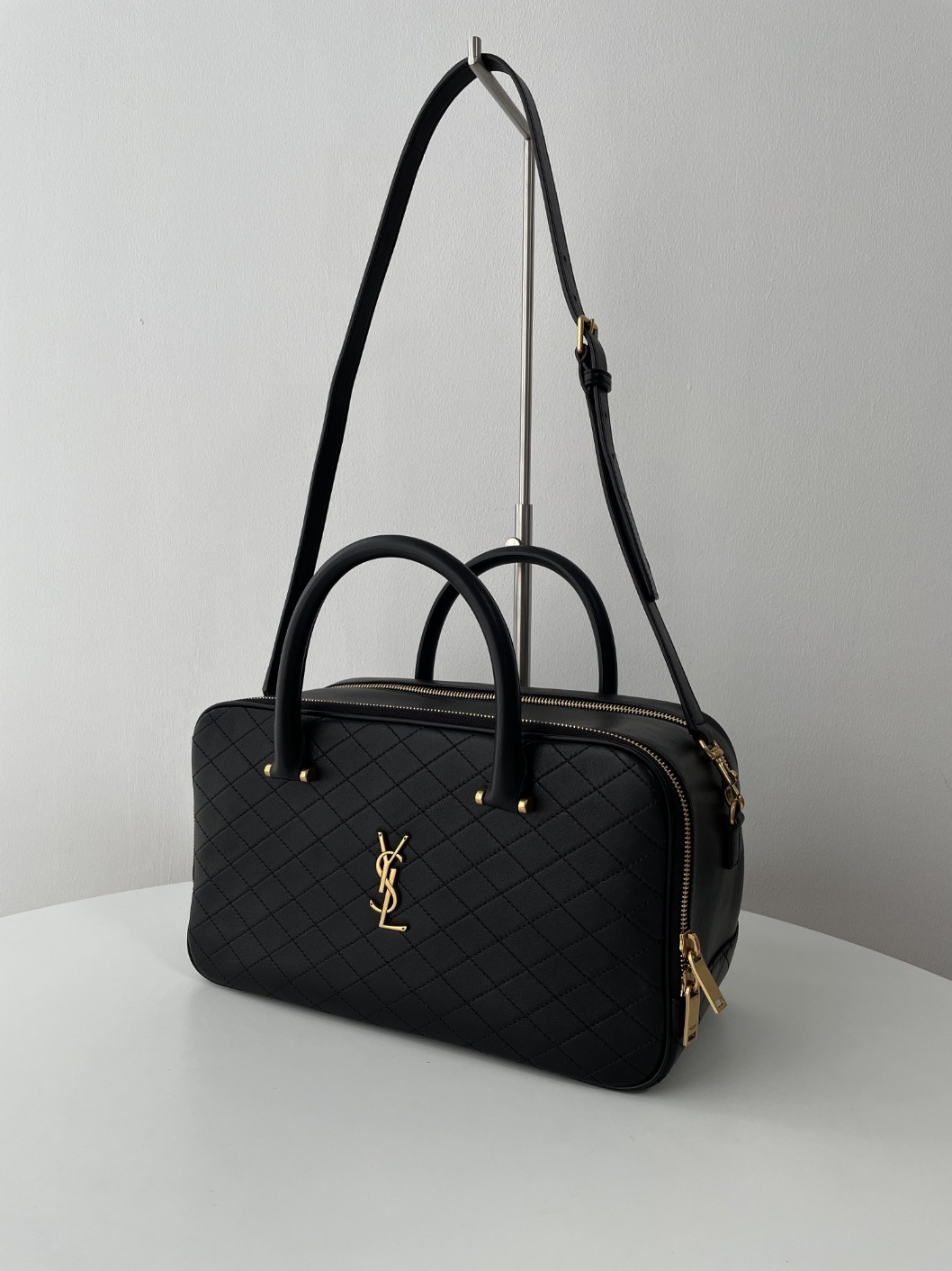 생로랑 LYIA DUFFLE BAG 2023 가을 겨울 신상품 고품질 오리지널 양가죽을 사용하여 부드럽고 섬세한 촉감을 가지고 있으며 퀼팅 스티치 공법과 결합하여 전체적으로 빈티지하고 캐주얼한 느낌을 발산함 스퀘어 디자인에 더블 지퍼가 있어 더욱 감각적인 디자인이 돋보임 모델 번호: 766785 사이즈: 31x16x13cm