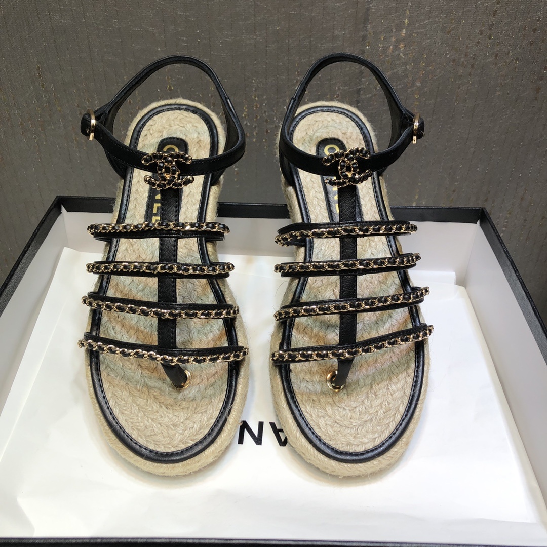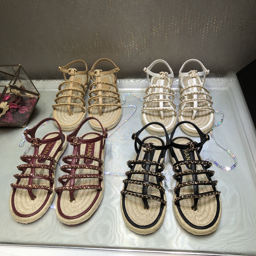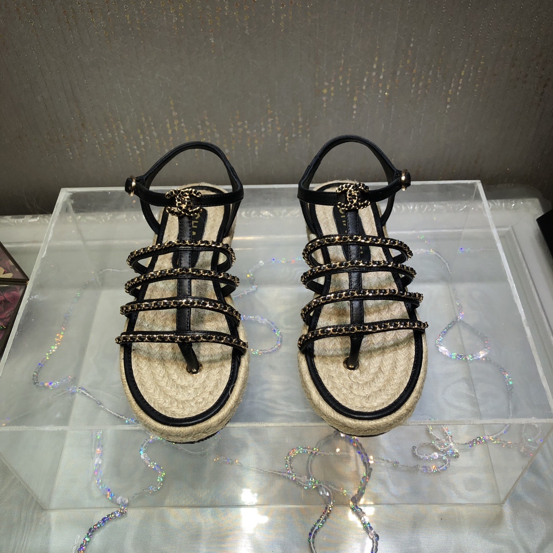 CHANEL 샤넬 24c 봄여름 신상품 마끈 밑바닥 헤비 체인 로마 샌들 올 핸드메이드 체인 스티치 Sheet: 오리지널 혼종 양가죽 안감: 물나염 무스탕 밑창: 2cm 대창: 오리지날 TPU + 오리지널 마끈바닥