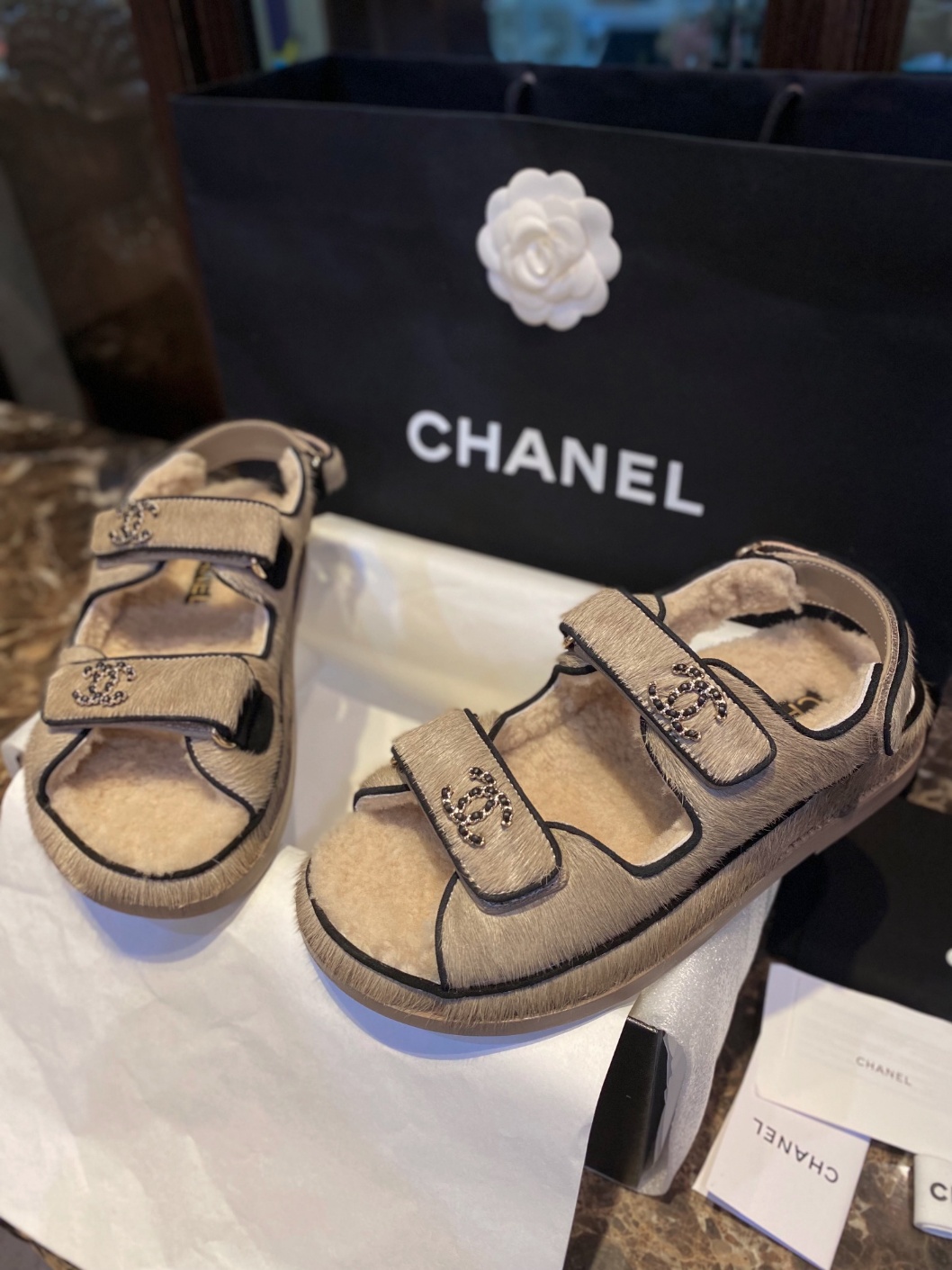 샤넬 브라운 벨크로 샌들 폭신폭신한 말털 부드러운 구름 위에 누운 듯 폭신함