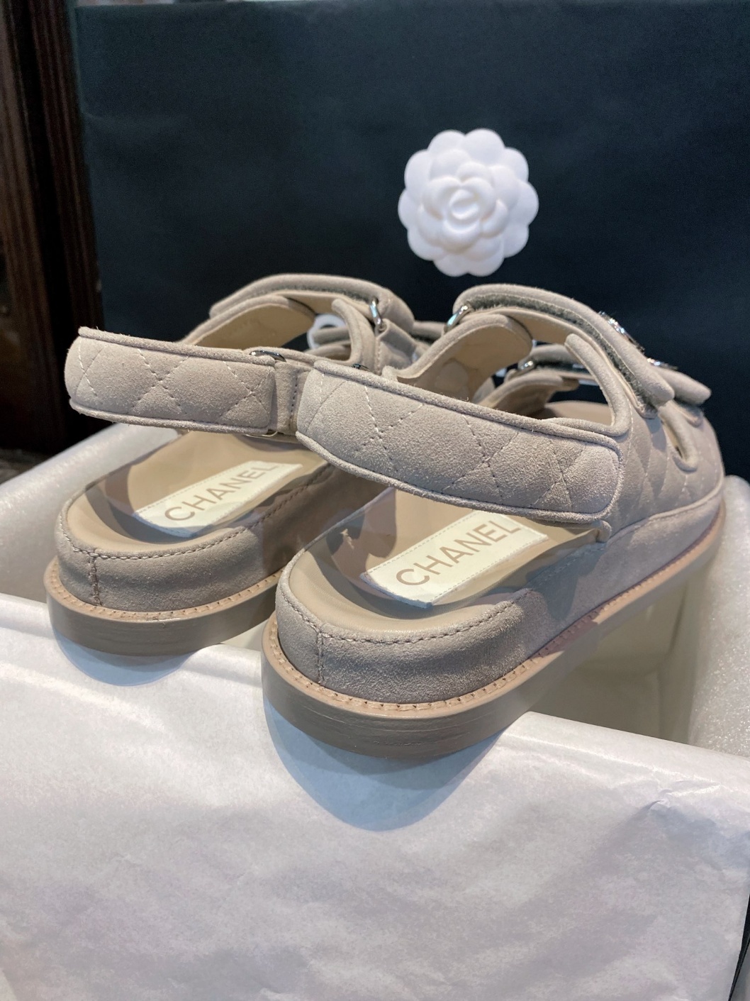 샤넬 금화 벨크로 샌들 살구 따뜻한 조명 아래에서 쉽게 하얗게 변함 실물이 좀 더 진하고 모란디 계열 보들보들 달콤, 설렘 듬뿍 남을 가리지 않는 절제된 품위. 바로크 구제 느낌 물씬, 편안함