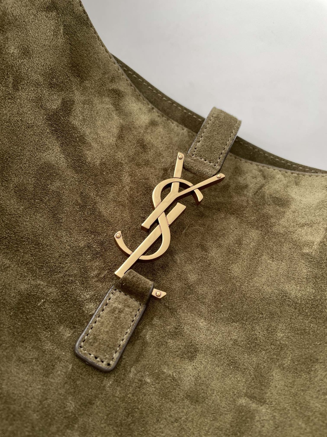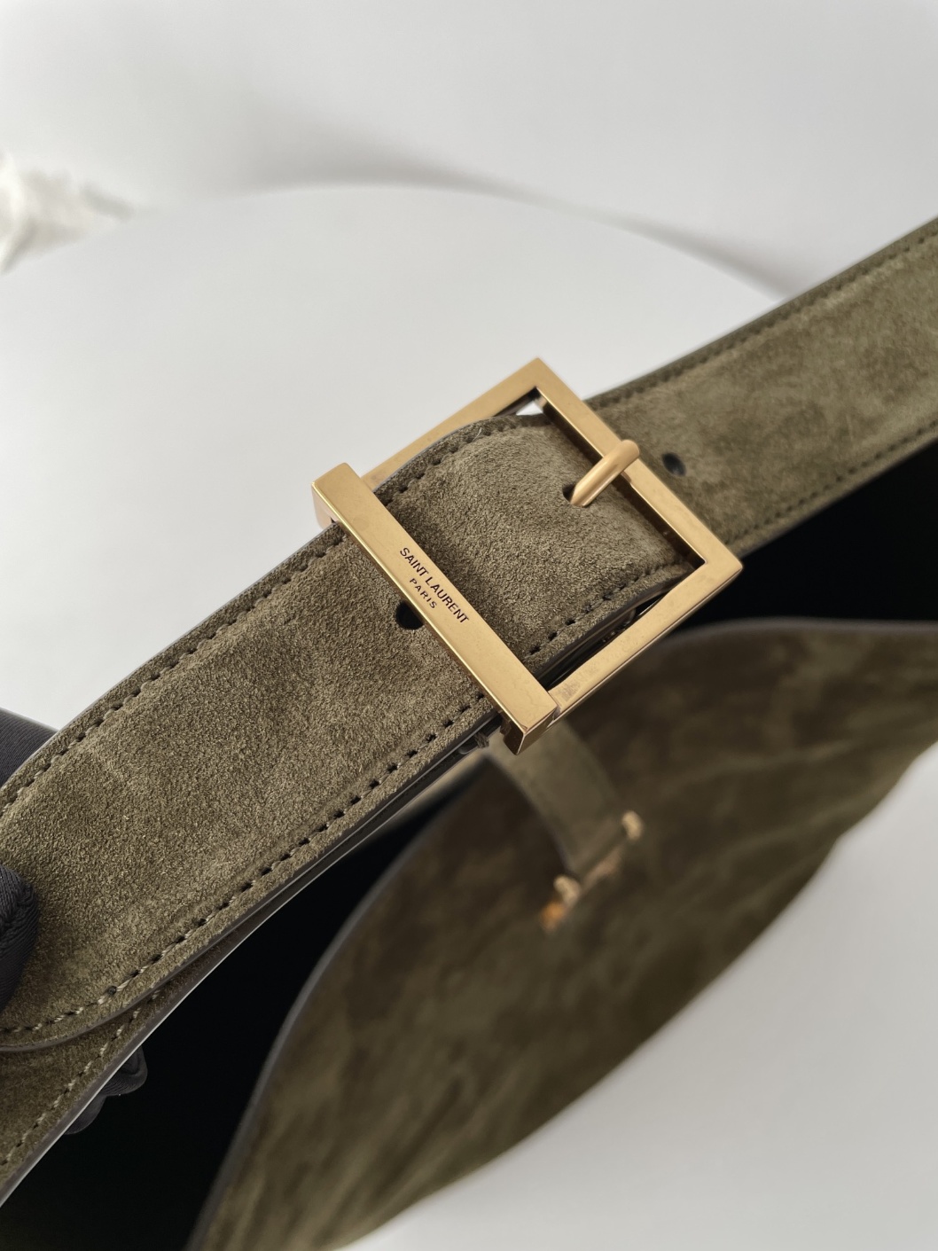 생로랑 LE5A7 호보 라지 스웨이드 보리그린 스웨이드 루프 클로져와 LE CASSANDRE로 장식 공간이 넉넉하며, 같은 색상의 스웨이드 라이닝에 메인 칸막이 2개와 내부 지퍼 포켓이 있음 조절 가능한 숄더 스트랩을 매치하여 다양한 연출이 가능 초대용량, 빈티지한 스타일, 고급스러운 컬러 모델번호: 753837 사이즈: 30x31x13cm
