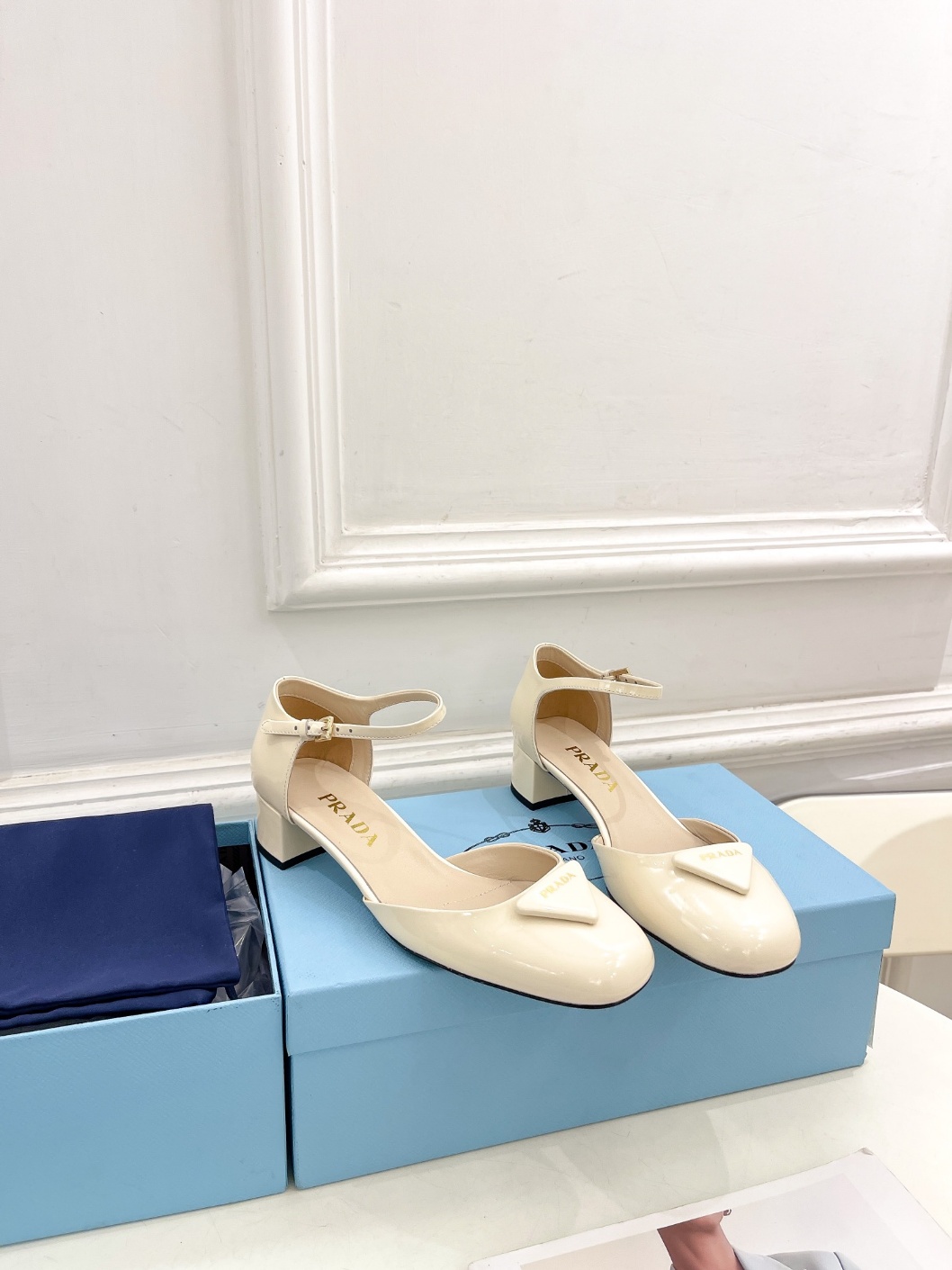 프라다 24SS 신상 가보시 삼각로고 중굽 샌들 라인 겉감: 맞춤형 소가죽 원단 안감: 수입 물염 양가죽 대창: 오리지널 이태리 리얼 가죽 대창 굽: 3.5cm