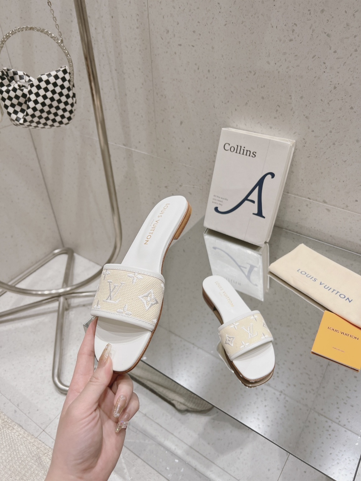 LV 신상 모노그램 전기자수 샌들 슬리퍼 우아하고 대범한 여신 필수 아이템 겉감: 맞춤 전기자수 안감: 발굽전체 무스탕 대저: 이태리 리얼 가죽 대저