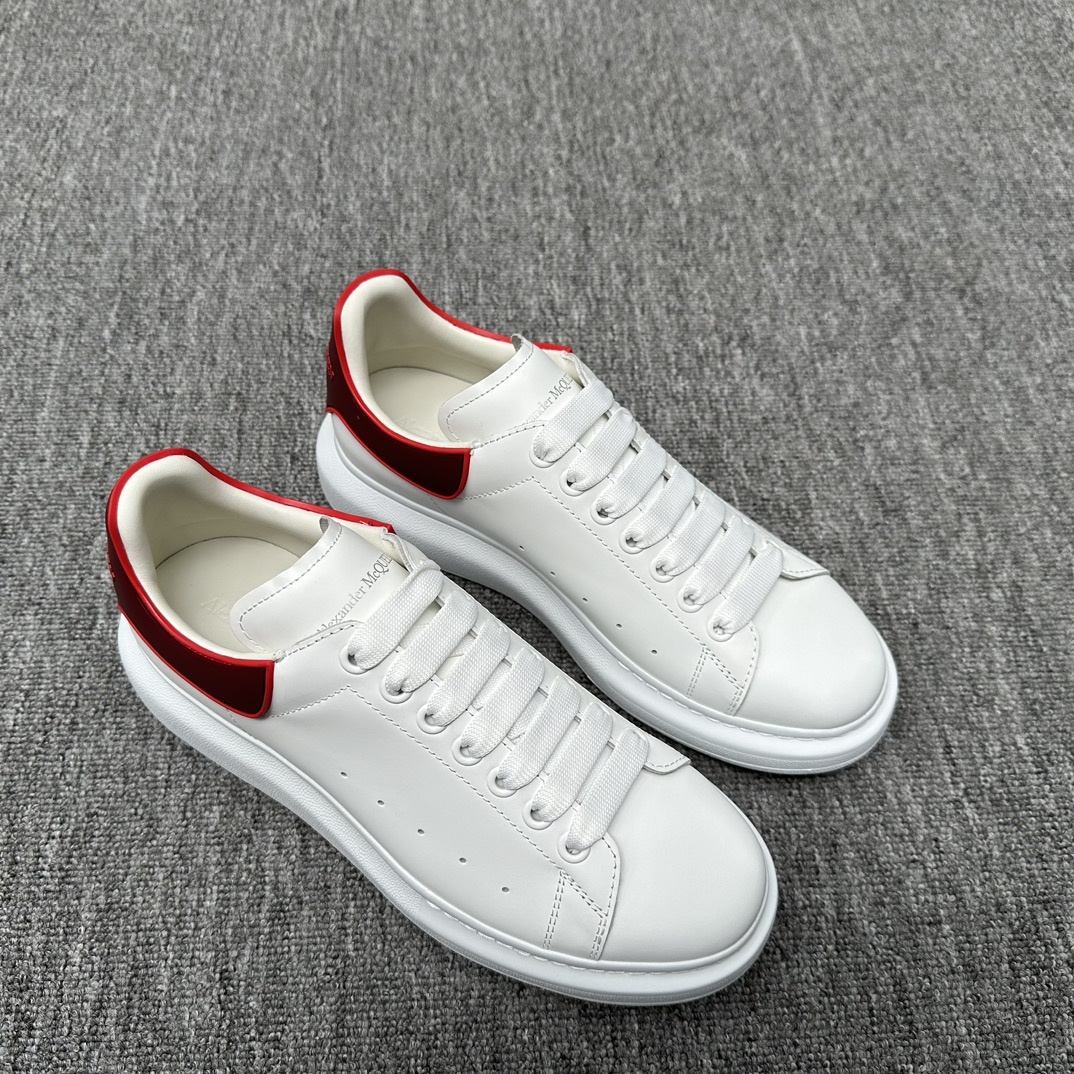 알렉산더 맥퀸 통굽 오버솔 스니커즈 올 화이트 컬러의 슈퍼 무비 소가죽 슬립온 스트랩, 혀와 뒷면에 알렉산더 맥퀸 로고가 장식 뒤꿈치 통굽 tpu+브랜드 로고 일체형 양가죽 내피 소가죽 깔창 와이드 4.5cm 두께의 고무창 패션 트렌드에 발맞춰 거리낌 없는 버전 최상위버전, 원박스 포장