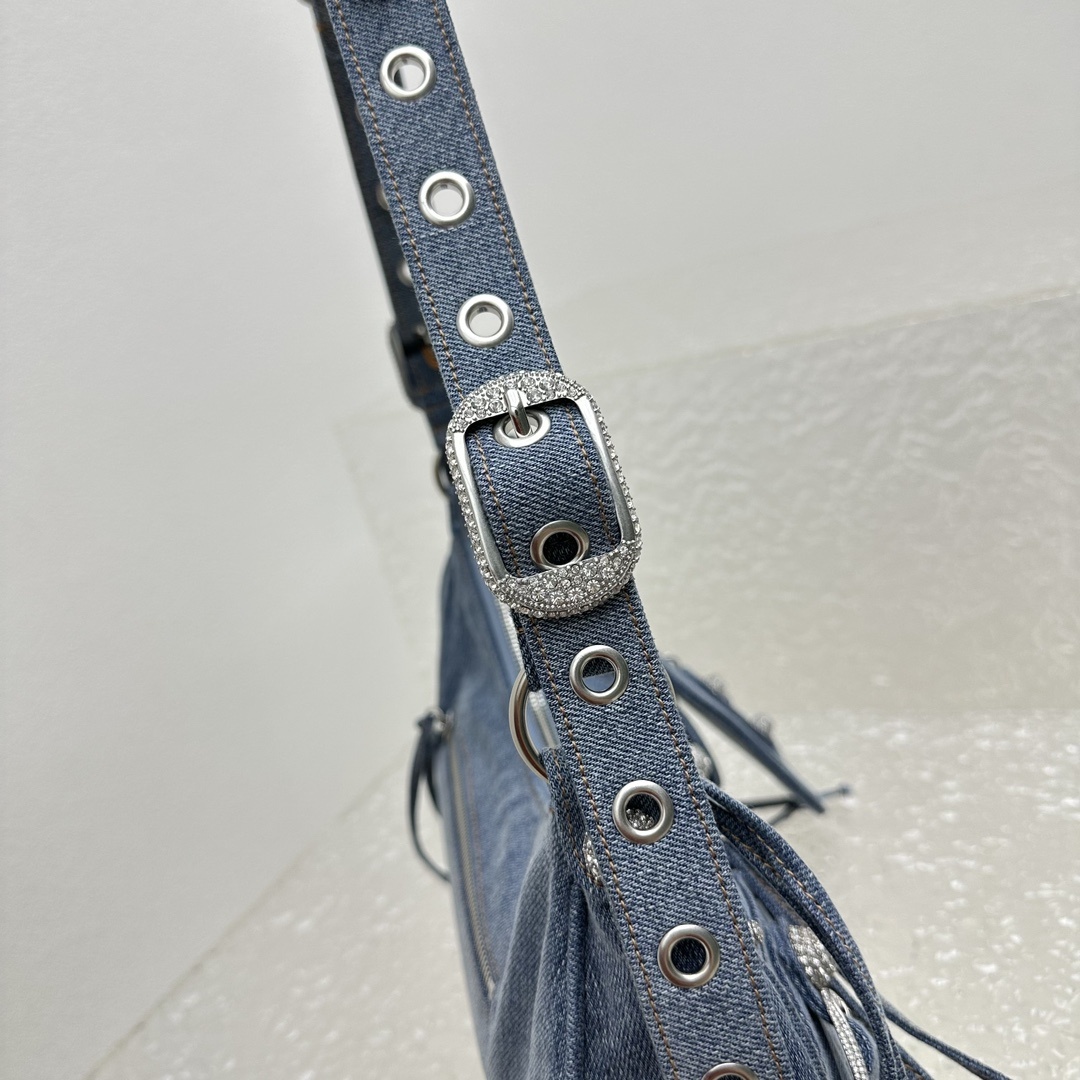 발렌시아가 미친 심쿵 르카골 바이크 데님 타닌 블링블링한 수입 큐빅까지 손거울 파우치도 함께 들어있어 디테일함도 충분함 사이즈: 길이33X높이16X폭8.4cm