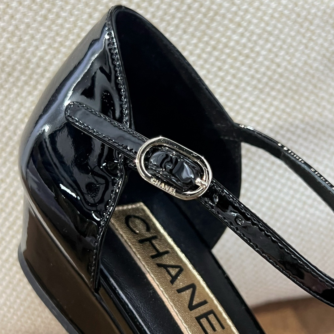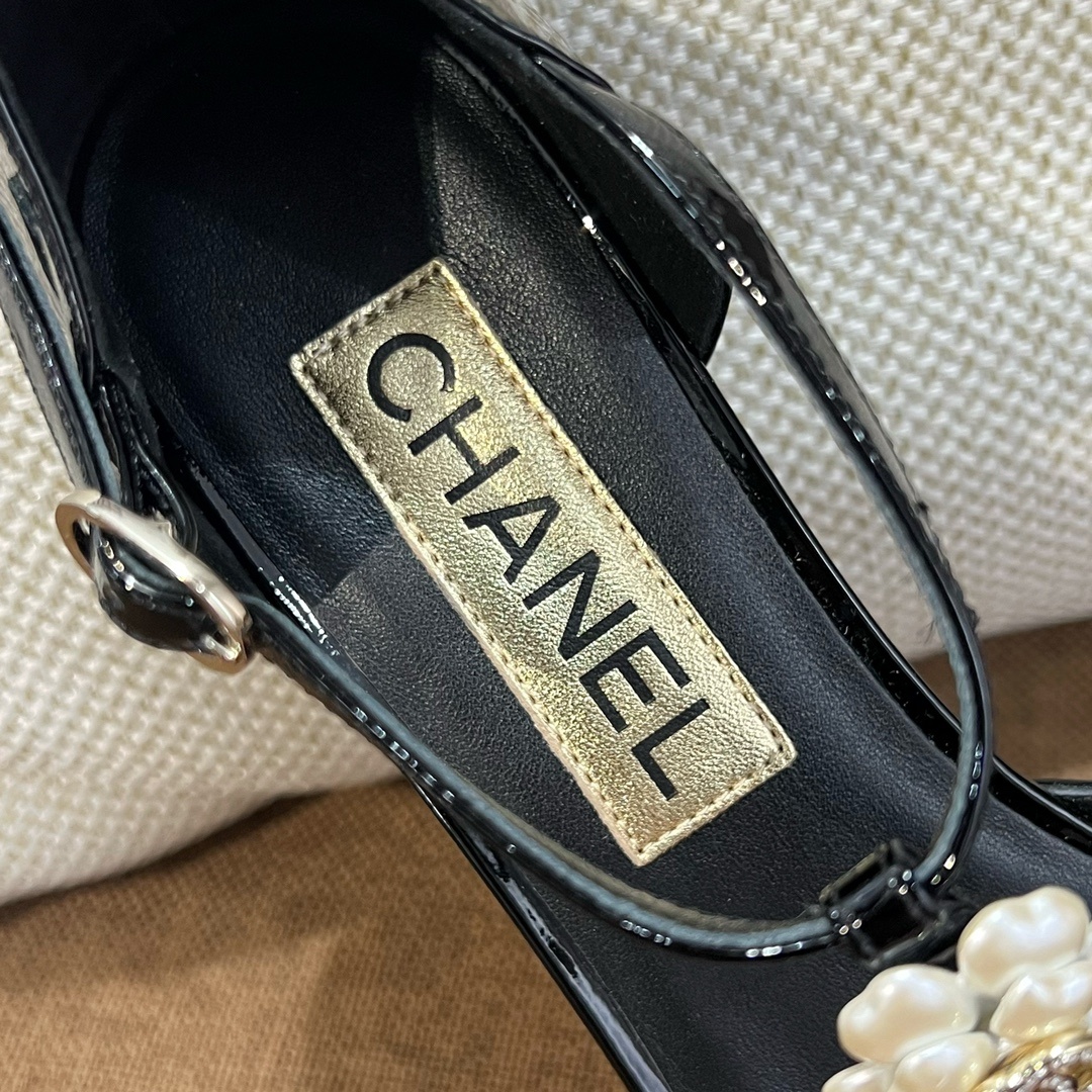 샤넬 23k 웨지힐 스틸레토 샌들 창은 수입 송아지 에나멜+골드 필름 스웨이드 사용 커스텀 동백꽃 버클+이태리 수입 A급 가죽 통굽 클래식한 컬러 배합으로 심플하면서도 우아한 슈즈 발 모양 상관없이 무적의 포용력 도톰한 양말과 함께 입어도 멋스러움